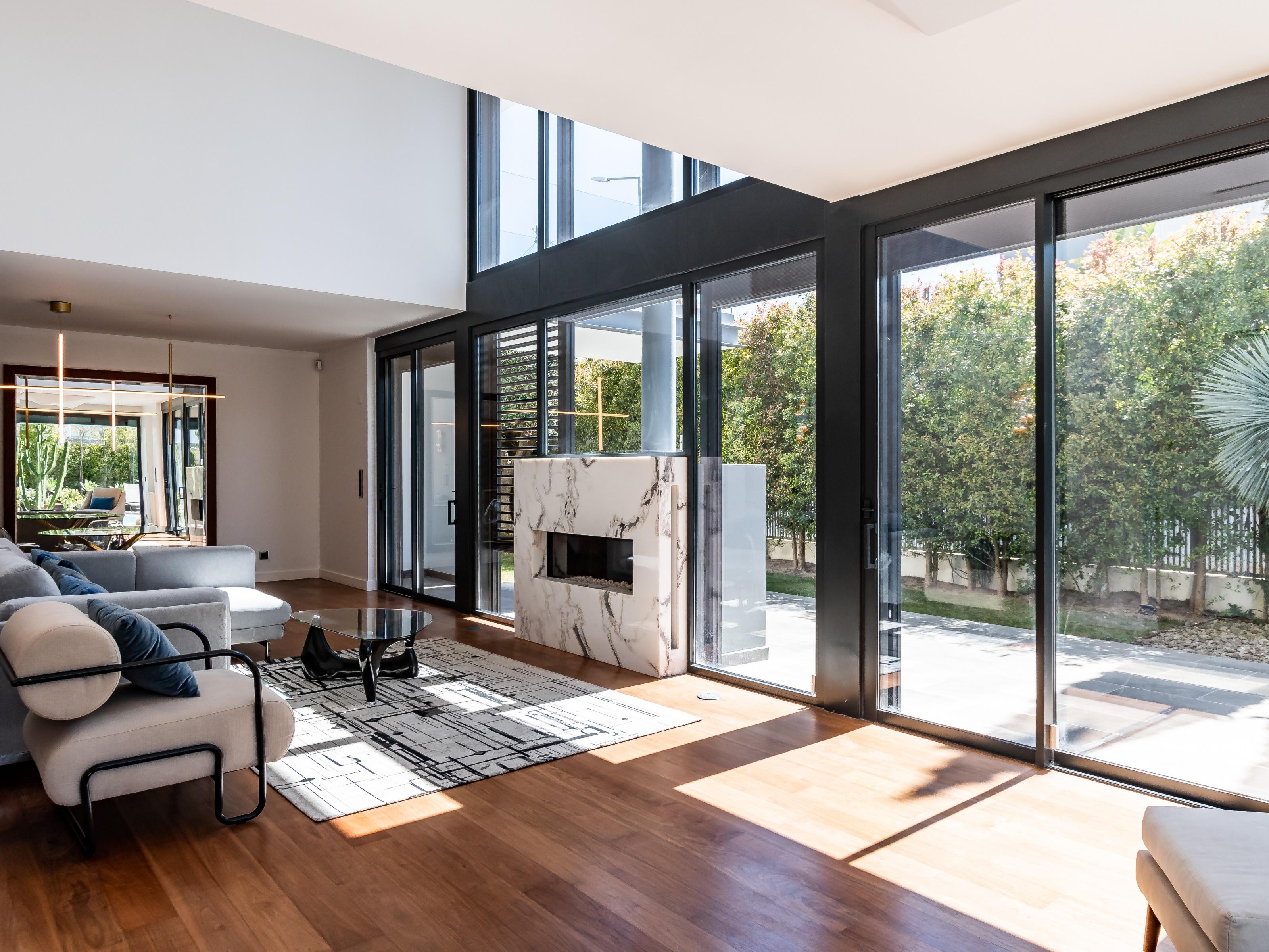 The villa features underfloor heating, central air conditioning, fireplace, central vacuum system and sauna.