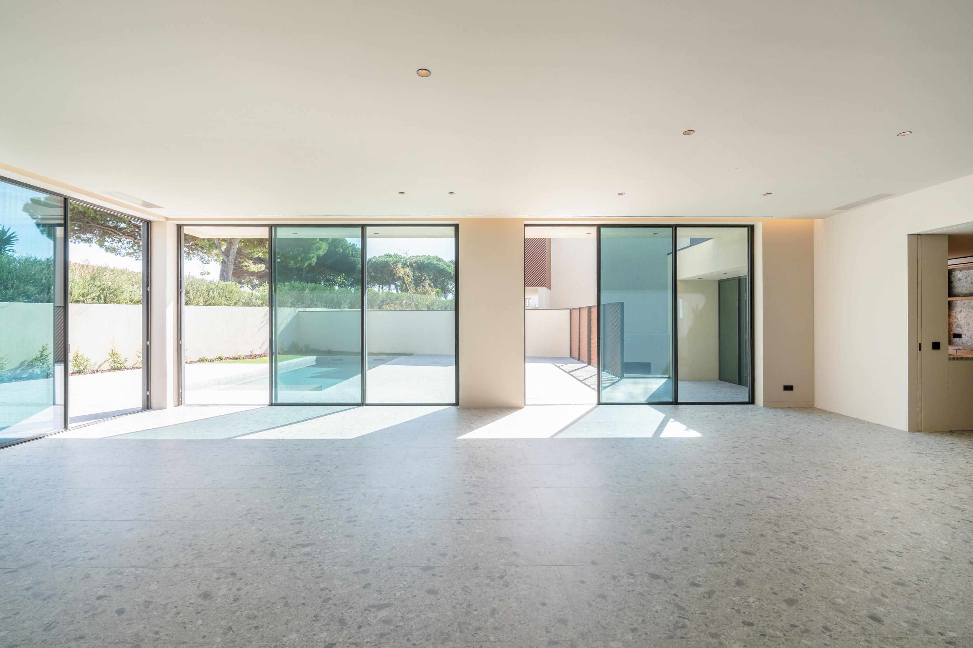 Contemporary architecture villa comprising three floors: ground floor with a living/dining room (77 sqm), large windows overlooking the garden and swimming pool, an office, guest bathroom and fully equipped open-plan kitchen. First floor with a master suite (22 sqm) with walk-in closet and balcony, and 3 suites with outdoor area. On floor -1 we have a suite, a laundry room and garage (106 sqm). Villa with solar panels, electric shutters, heat pump and home automation system.