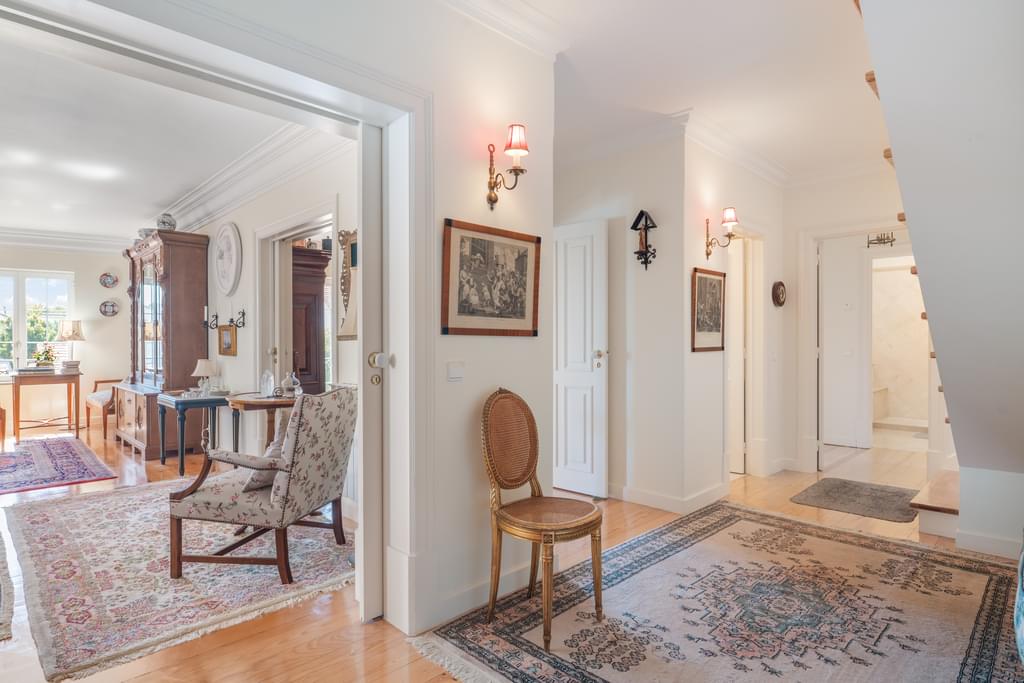 Excellent 5+1 Bedroom Duplex Apartment in the Historic Center of Cascais Located in the heart of Cascais’ historic center, this magnificent 5+1 bedroom duplex apartment offers 385 sqm of private gross area, combining comfort, space, and a prime location — just a 5-minute walk from the beach, train station, and all amenities. Set in an exclusive building, recently renovated, with only two apartments (one per floor), this property stands out for its spacious rooms, abundant natural light, and excellent sun exposure (East, South, West). Property Layout First Floor: Entrance hall (15 sqm); Living room (42 sqm), west-facing, with fireplace, direct access to a pleasant interior patio and balcony; Dining room (15.6 sqm), also west-facing with a balcony; Fully equipped kitchen with stunning views over the sea and Cascais bay; Pantry; Guest WC; Service suite next to the kitchen; Master suite (18.8 sqm) with walk-in closet; Additional bedroom (19.2 sqm); Full bathroom. Second Floor (spacious attic with high ceilings): Living room with sea view (26 sqm); Three bedrooms (18.8 sqm, 19.2 sqm, and 18.7 sqm), the last being ideal as an office; Shared bathroom. Extras and Amenities: Box garage for 2 vehicles with storage (30 sqm); Additional parking space inside the garage (outside the box); Central heating and air conditioning; Elevator with direct access to the garage; Recently renovated 2-story building; Close to national and international schools; Only 30 minutes from Lisbon and Lisbon Airport. Ideal for those who value: Living in the center, with quality of life and walking mobility; A spacious interior with excellent layout; Sea views and abundant natural light; An exclusive property in a discreet and elegant building. Cascais is a Portuguese town known for its bay of beaches, shopping, and cosmopolitan lifestyle. Considered the most sophisticated destination in the Lisbon region, it is marked by elegant mansions and refined architecture. With the sea at its feet, Cascais proudly offers 7 golf courses, a casino, a marina, and numerous leisure spaces.