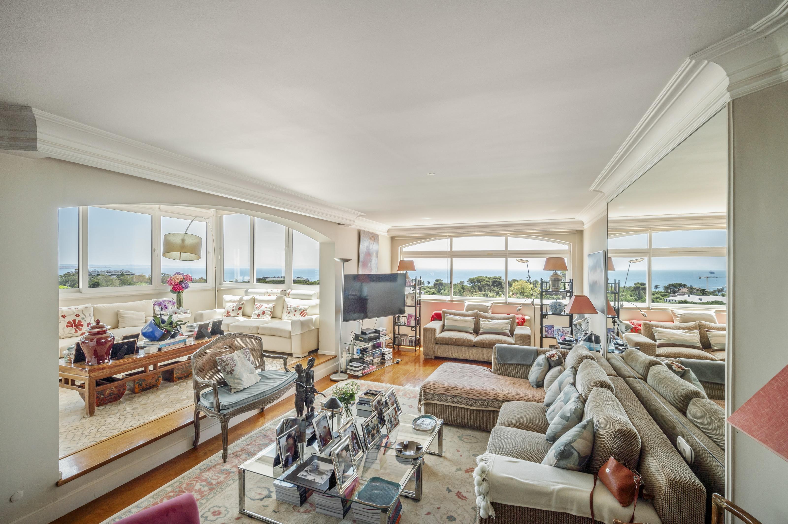6 bedroom duplex penthouse, with frontal sea view, inserted in a private condominium with garden and swimming pool, with a privileged location next to Parque Carmona, Cascais.