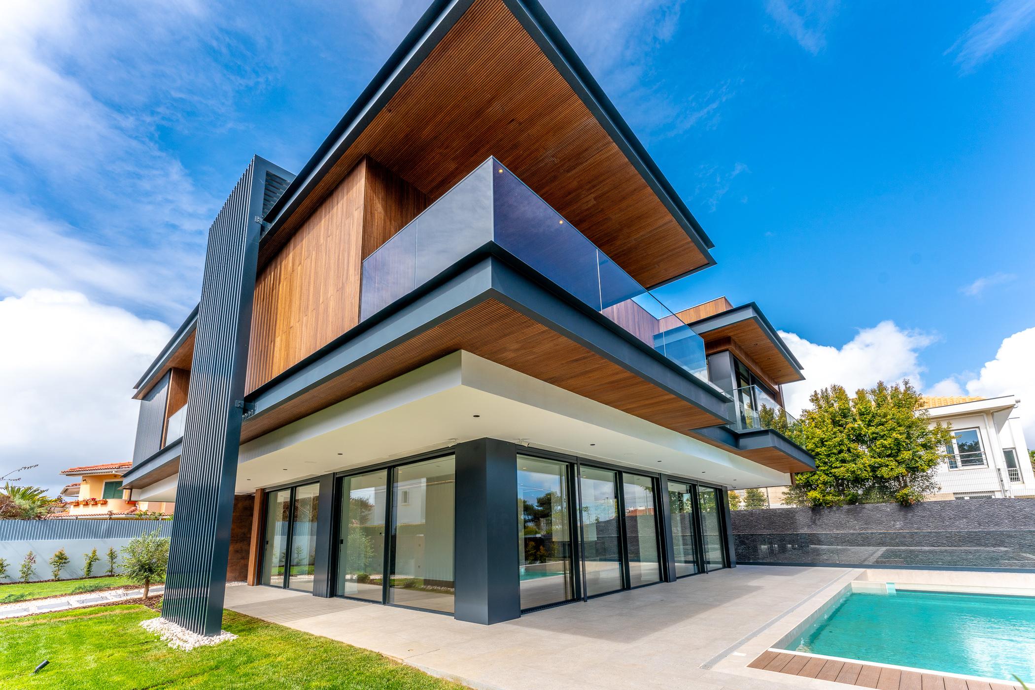 6-bedroom villa with 603 sqm of gross construction area, contemporary design, with garden and pool, garage, on a 900 sqm plot, in Birre, Cascais.