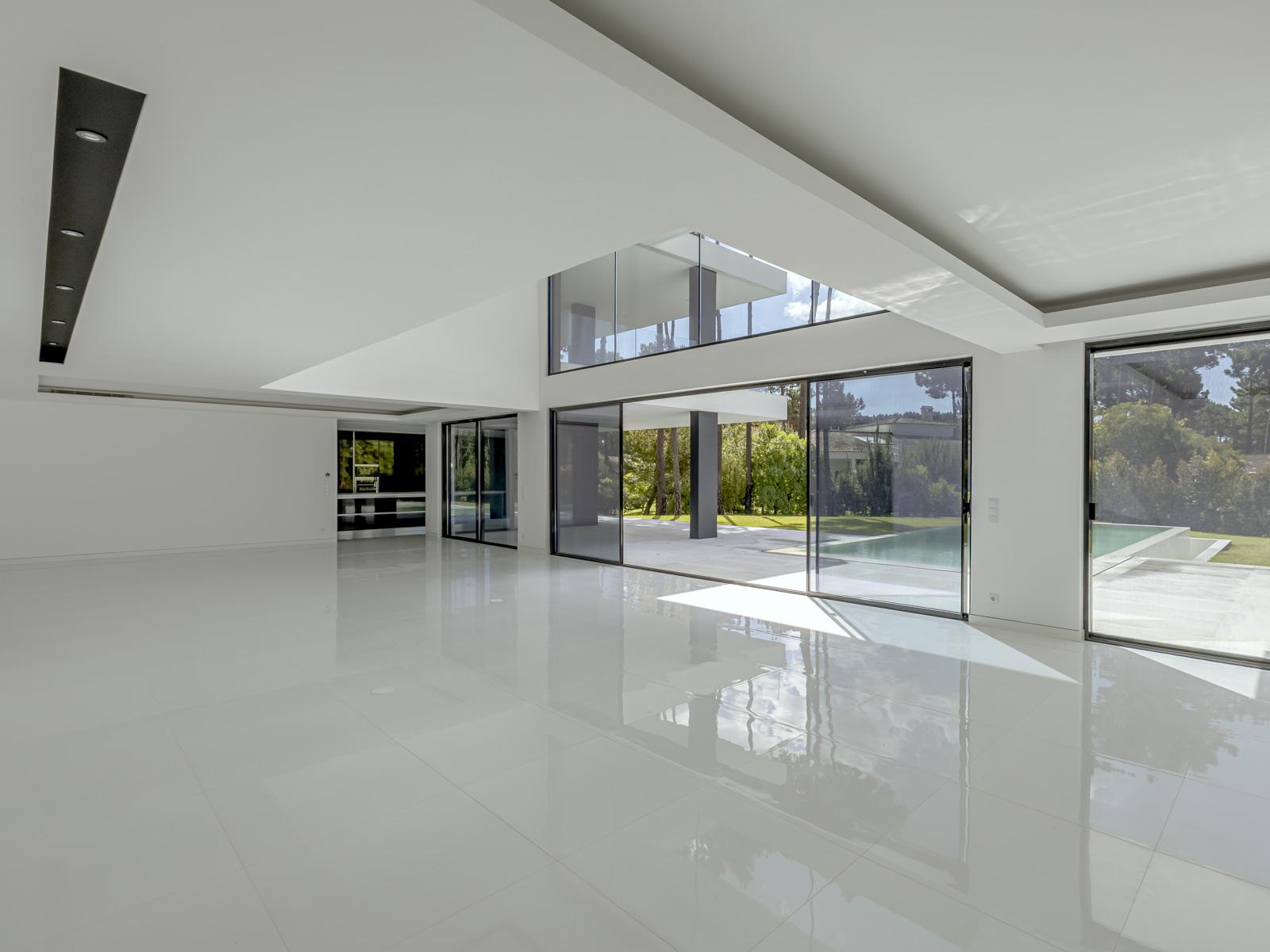 The villa, with contemporary architecture, consists of six bedrooms, all en-suite, including a 75 sqm master suite with access to a 70 sqm private terrace. It features a very spacious social area, with large windows facing the garden and pool. The living room is 100 sqm and the kitchen, fully equipped with top-of-the-range appliances, is 34 sqm. Basement with 205 sqm, including games room and garage.
