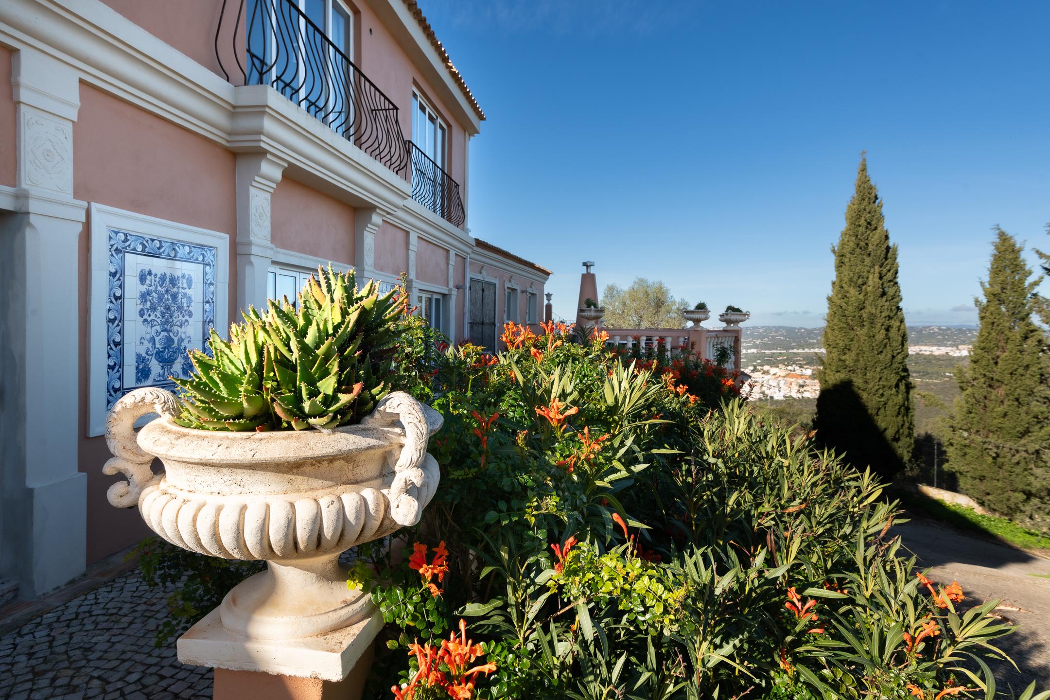 The outdoor areas unfold from terrace to terrace, each different and set on multiple levels, all centered around a fountain reminiscent of the stunning Amalfi Coast. Likewise, the traditional built-in masonry benches evoke the magical balconies of Ravello. The main terrace, where the swimming pool is located, faces west and allows you to fully enjoy the spectacular sunsets with which the Algarve delights us every evening.