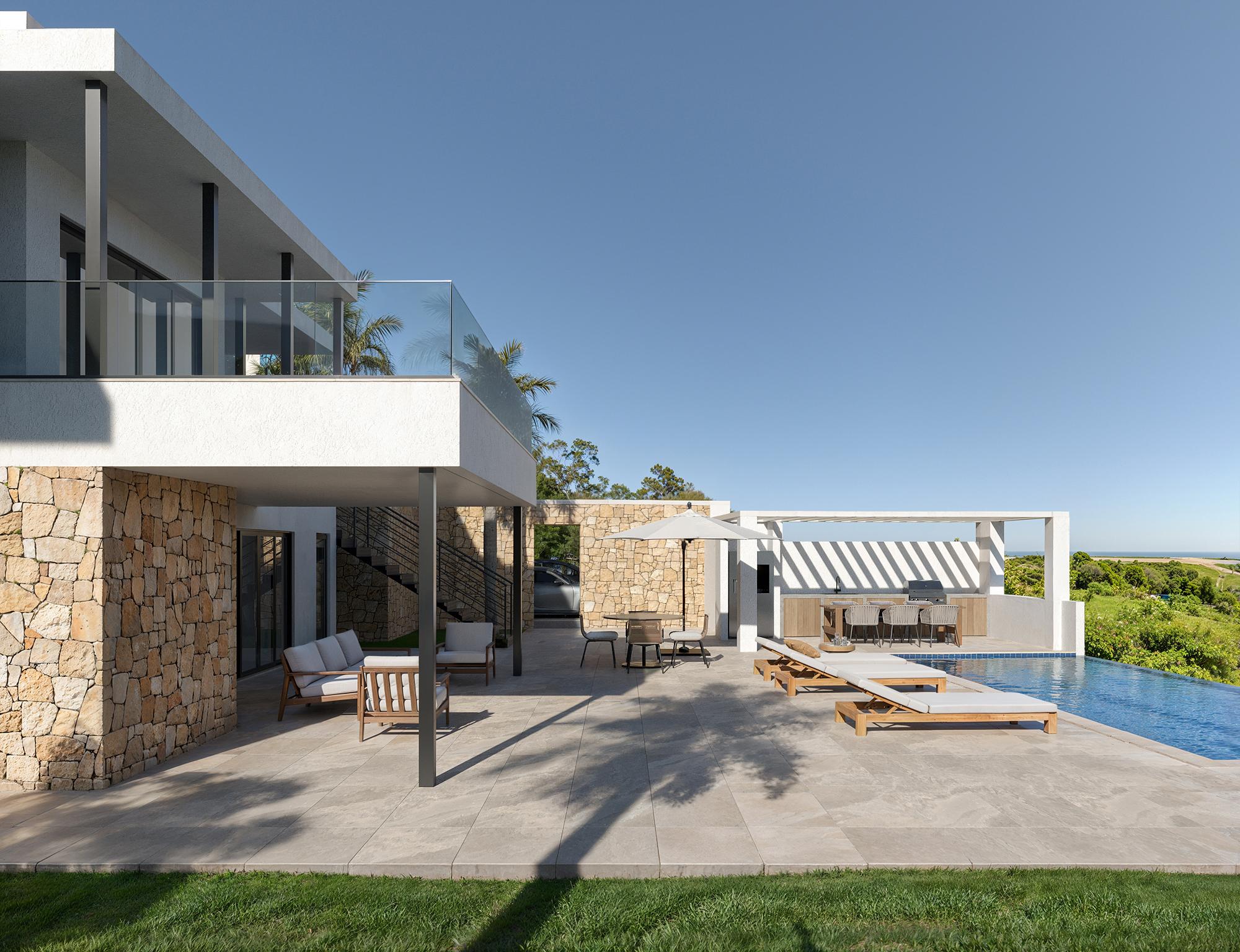 It is a truly special setting, tucked away at the end of a quiet road, surrounded by kind neighbours and beautiful homes, where the only sounds that greet you are the songs of the birds. From here, the ocean stretches before you in a breathtaking 180-degree view, while the soft northern hills embrace the landscape behind.