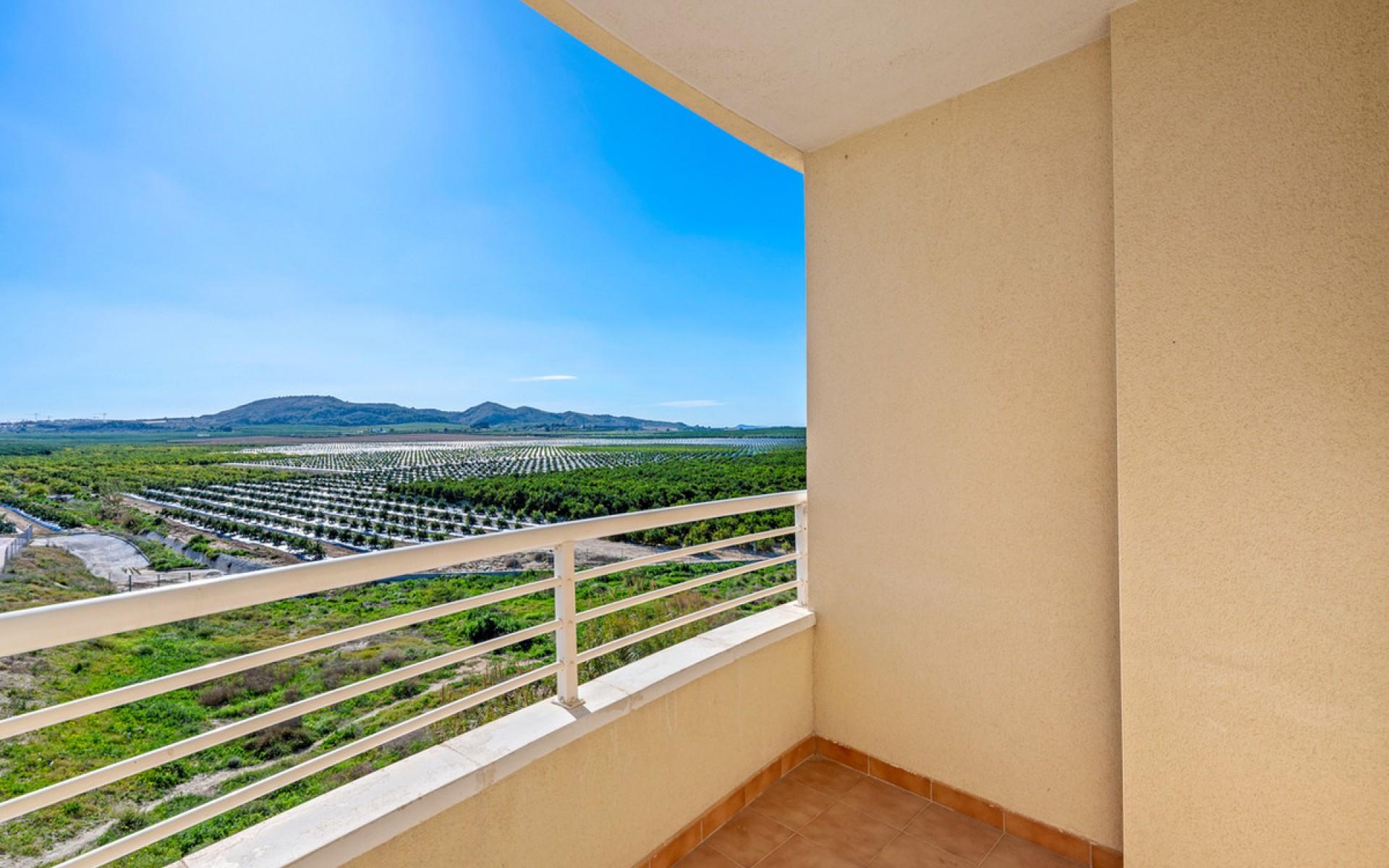 This charming two-bedroom apartment with stunning countryside views is located in the centre of Algorfa, Alicante. The property features a bright living/dining room, a fully equipped semi-open kitchen, two bedrooms with fitted wardrobes, a bathroom with a bathtub, a south-facing terrace with fantastic views of the surrounding countryside and mountains, and there is also a private rooftop terrace/solarium for making the most of the sun and the views.