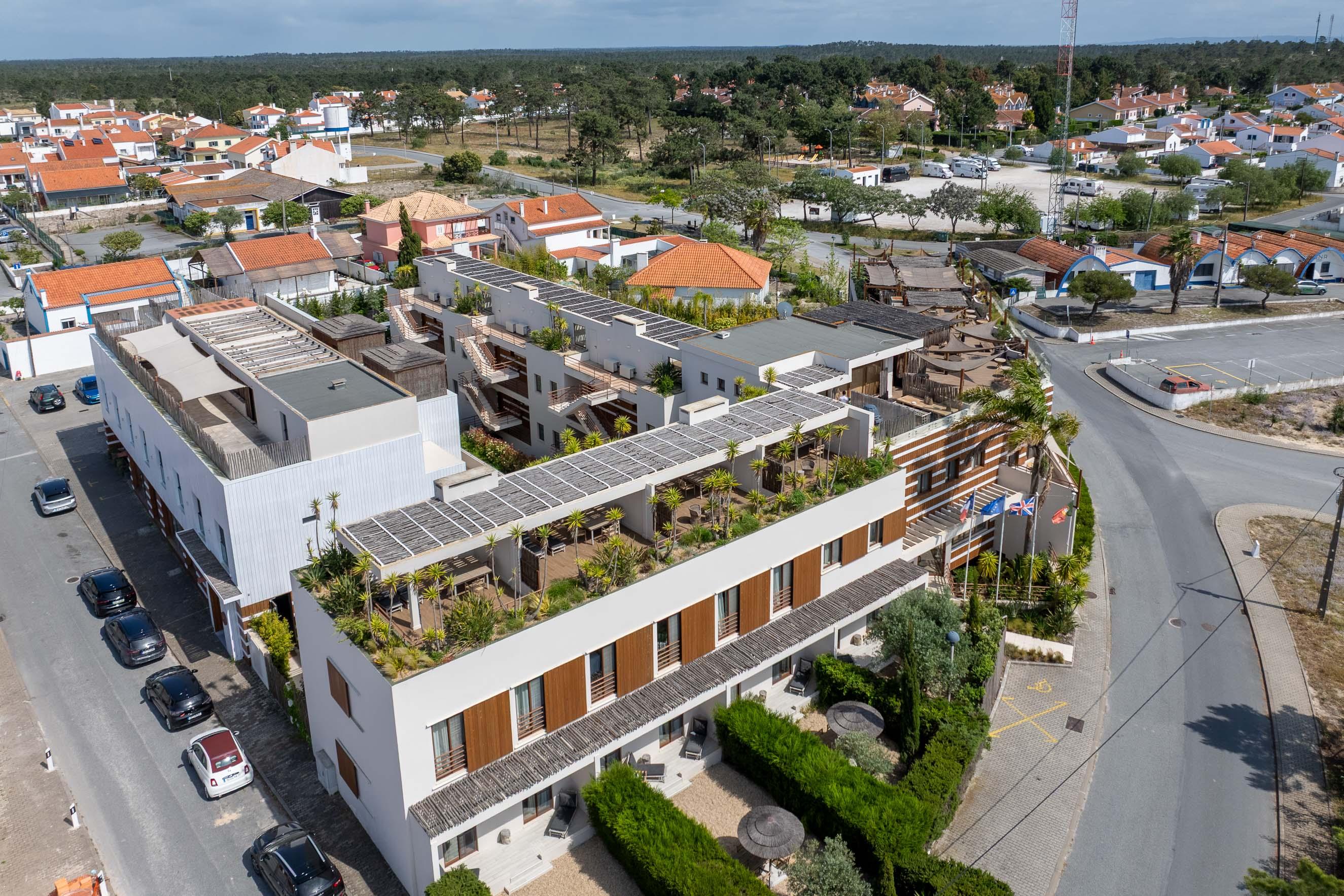 Almalusa Comporta is an Apartment Hotel consisting of 22 Hotel rooms and 31 apartments, benefiting from various services namely reception, bakery/pastry shop, breakfast room, library, garage, wellness area, communal swimming pool and rooftop bar.