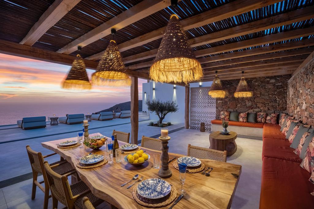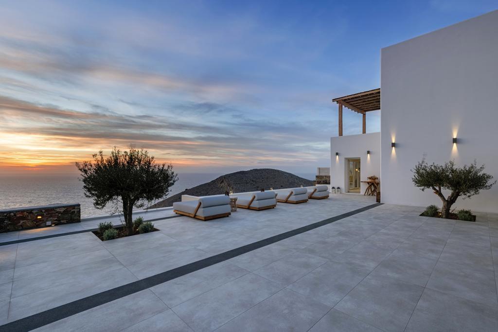 The beautifully landscaped garden surrounds a private infinity pool that seems to merge with the horizon. From the terrace, enjoy spectacular views of the Aegean Sea and admire the breathtaking sunsets that illuminate the Syros coastline. An outdoor dining area has been set aside for unforgettable evenings with friends and family in an enchanting setting.
