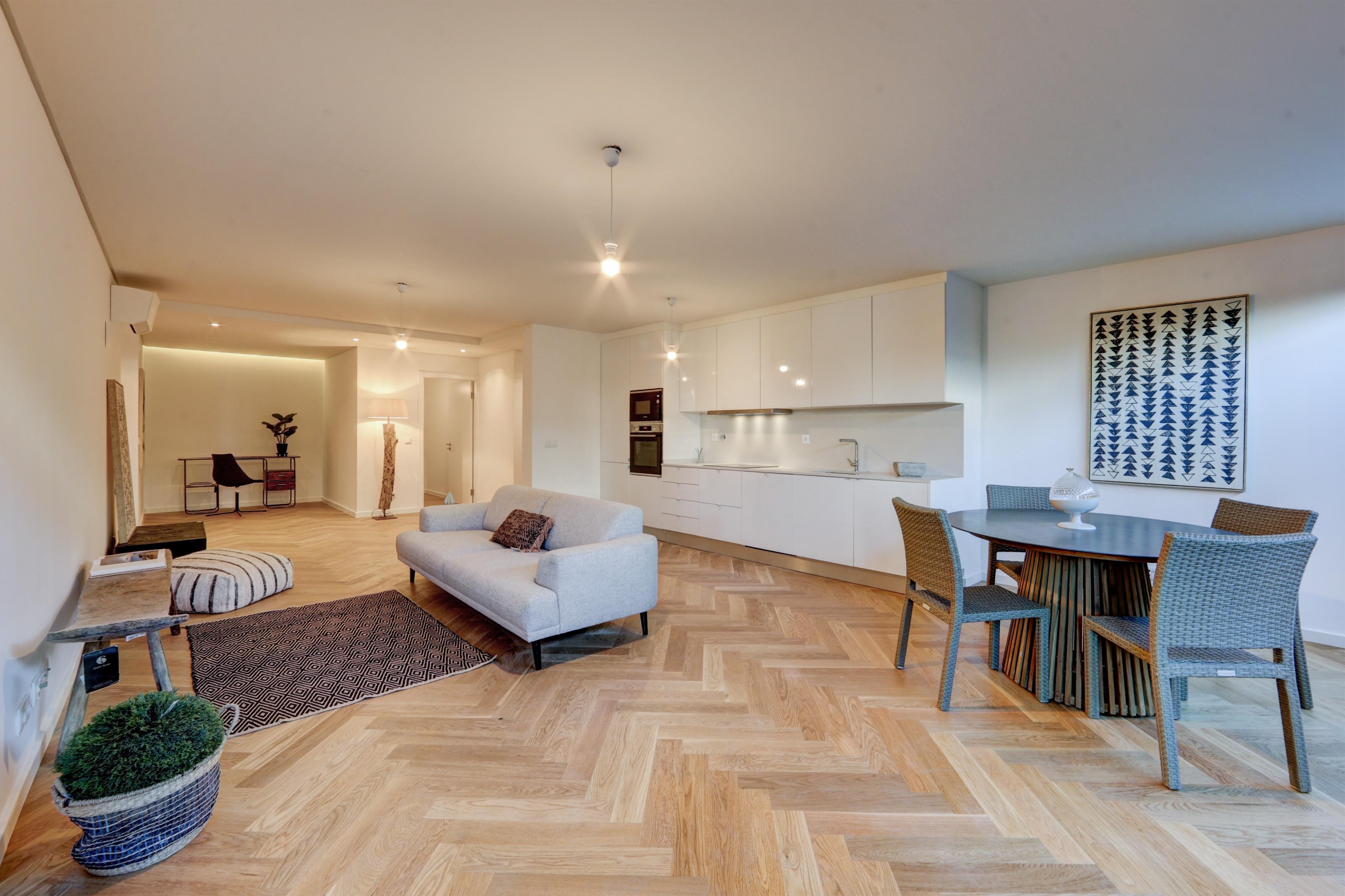 2 bedroom flat with 128m2 of private gross area, with private terrace, a few meters from the beach in a building with a communal pool and with only 4 fractions, 1 per floor, in a building with lift, debuting in the centre of Estoril.