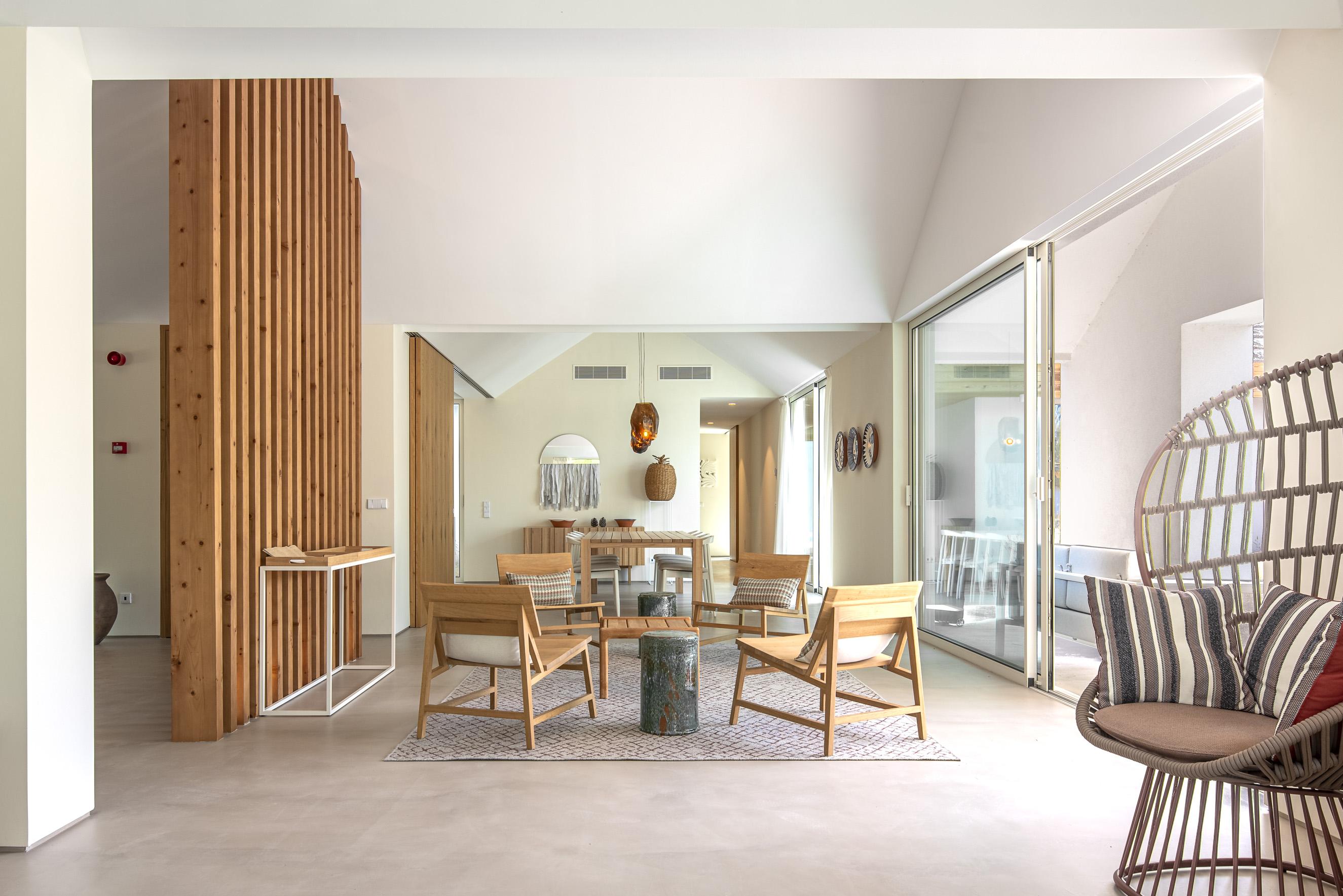 The villa consists of a main block with kitchen in open space, dining room, living room. guest bathroom and two bedrooms en suite. In the second block, with independent access is the master suite with office and windows opening onto the pool.