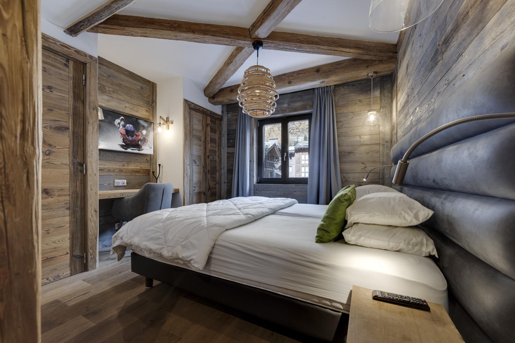 The four double en-suite bedrooms offer comfort and privacy for 8 guests, all decorated with the same refinement as the living area. A private sauna completes the high-end features, while a balcony and private ski locker add convenience. Underfloor heating ensures optimal comfort throughout the season.