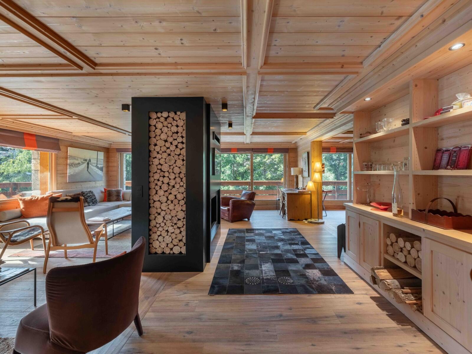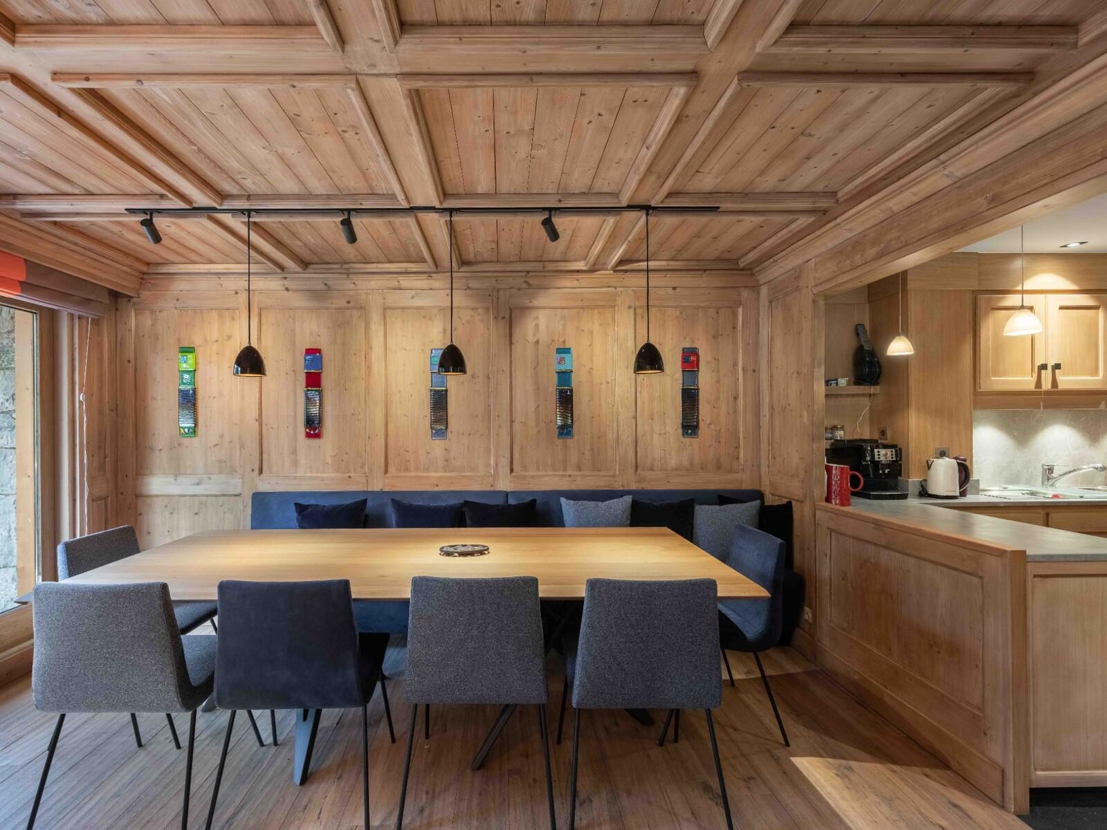 The living room is particularly bright thanks to its large bay windows, opening onto a huge south-west-facing terrace, perfect for soaking up the sun after a day on the slopes. The living room, with its elegant fireplace, creates a warm and refined atmosphere, ideal for relaxing with family or friends.