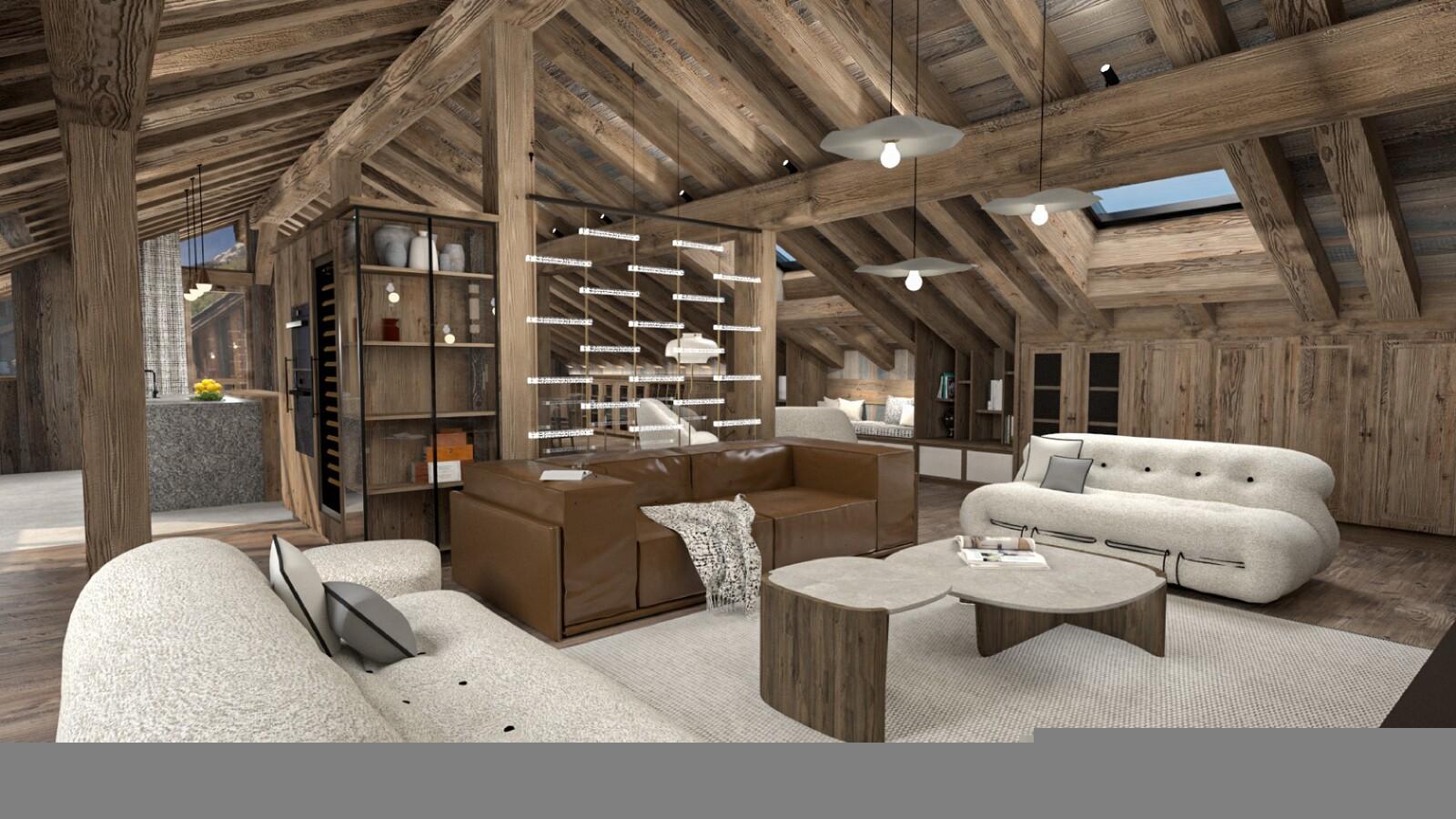 With a generous living area of 323 m², this 6-bedroom en-suite chalet spans three levels and features a private wellness area complete with sauna, hammam, massage room, indoor pool, and jacuzzi—offering the ultimate après-ski relaxation. The architecture blends local stone and reclaimed wood, creating a seamless integration with the traditional surroundings.