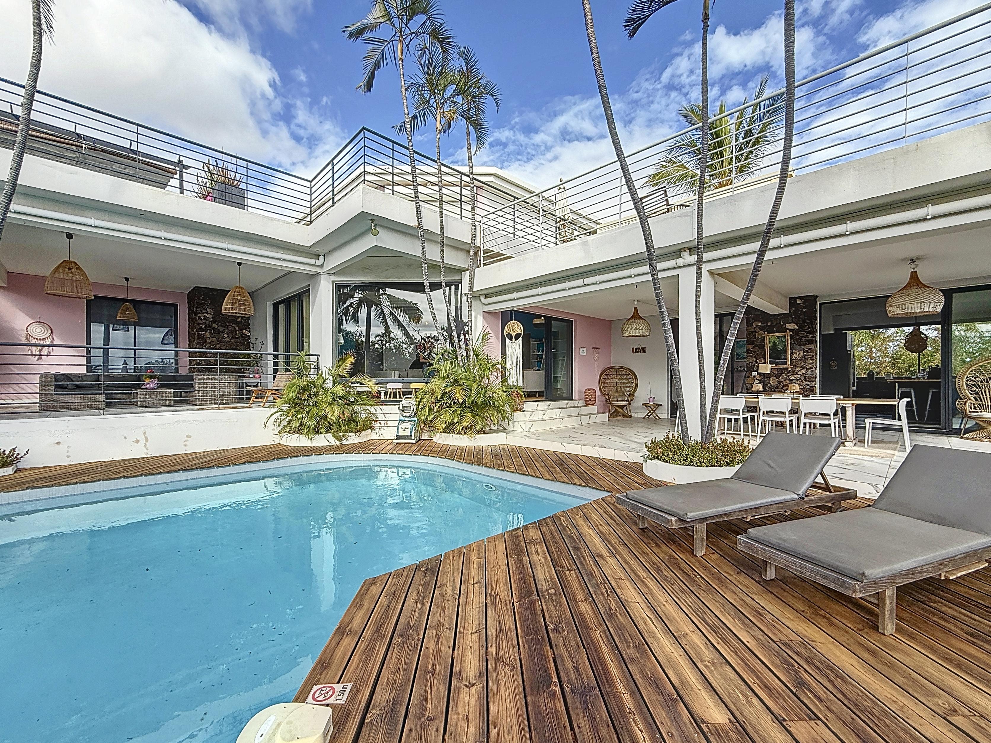 Designed as a sanctuary dedicated to well-being and tropical art de vivre, the villa features 14 generous rooms bathed in natural light, blending spectacular volumes with intimate atmospheres.