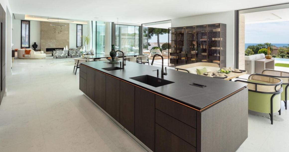 The exterior is a landscaped sanctuary, blending Balinese influences with Andalusian touches of lemon, olive and exotic plants. The infinity pool and spacious terraces with summer kitchen and barbecue area provide an idyllic setting for relaxing and socializing all year round.