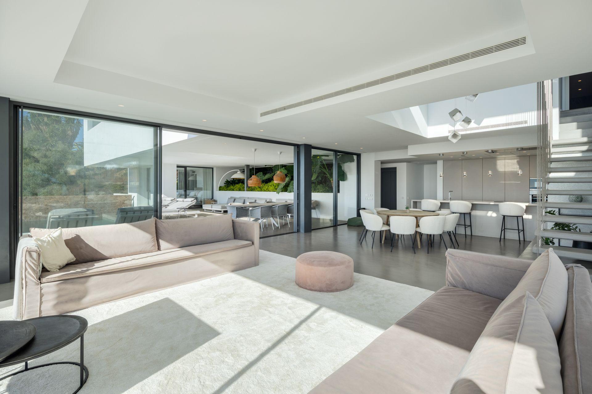 A contemporary masterpiece set in the exclusive gated community of El Herrojo Alto, La Quinta. Perched on an elevated position, this villa offers unrivaled panoramic sea views across the coastline, stretching to Gibraltar and the North African horizon. Combining modern luxury with natural beauty, this property is a haven of sophistication and comfort.