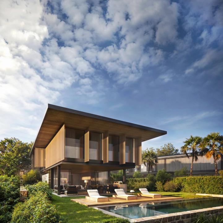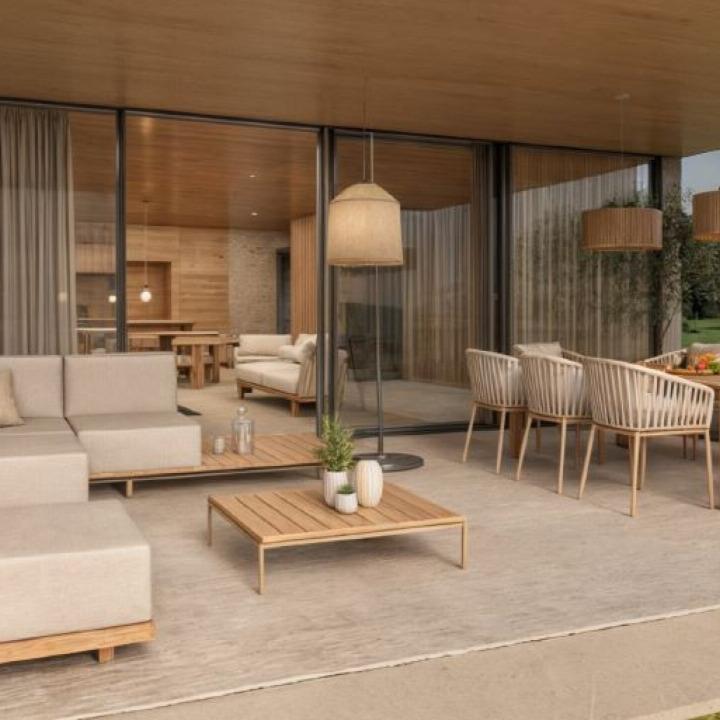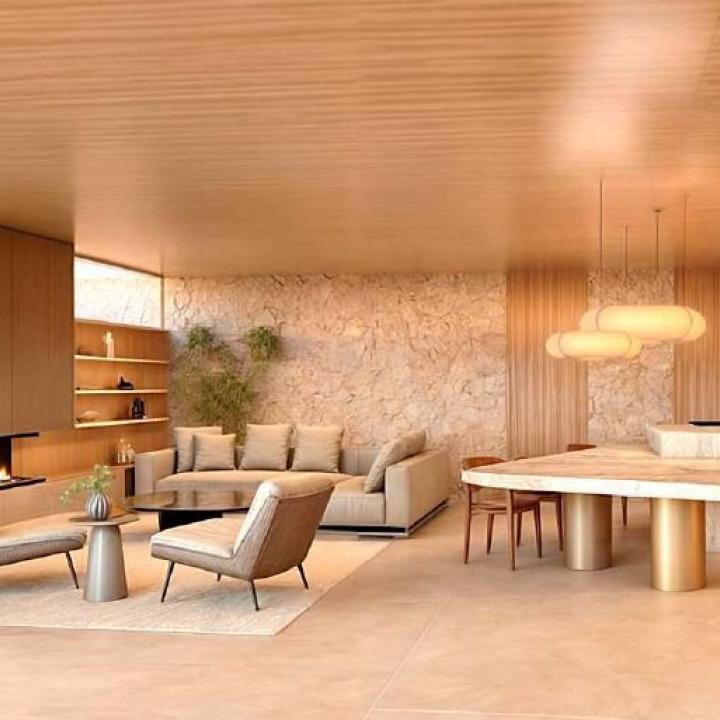 The refined interiors have been designed to combine sophisticated aesthetics with functionality. The open-plan living space harmoniously links the kitchen, living room and dining room, enhanced by huge bay windows that bathe the space in natural light and offer direct access to the terraces. On the upper floor, the sumptuous master suite boasts a bespoke dressing room, en suite bathroom and private terrace with panoramic views. Elegantly appointed guest bedrooms guarantee comfort and privacy. On the lower level, the villa boasts exclusive features, including a spacious garage, entertainment room, private office and state-of-the-art spa and gym.