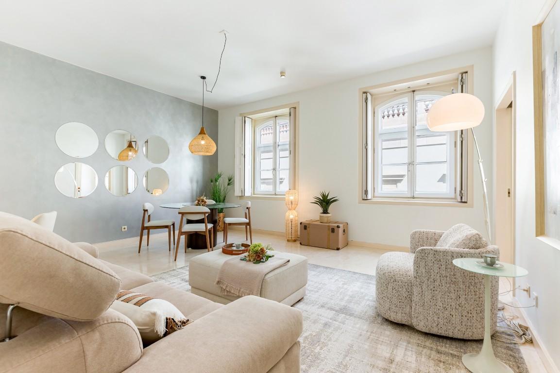 Discover this exceptional one-bedroom apartment in the heart of Chiado, one of Lisbon’s most iconic and sought-after neighbourhoods. Offering a generous floor area and a smart layout, this property stands out for its rare combination of space, natural light and comfort in the city’s historic centre.The apartment features a spacious bedroom, a bright and airy living room, a full bathroom, and a large kitchen complete with a laundry area and pantry. Both the living room and bedroom benefit from large windows, flooding the interiors with natural light. Located on the fourth floor, the property enjoys excellent sun exposure and a peaceful atmosphere.Set within a high-quality building designed by the renowned architect Álvaro Siza Vieira, the apartment blends contemporary architectural elegance with the authenticity and charm that define Chiado.The location is truly unbeatable, with immediate access to boutique shops, renowned restaurants, cultural landmarks and excellent transport links. Whether as a primary residence, pied-à-terre or investment, this property benefits from strong demand and consistent value appreciation.If you are looking for a property with character, generous proportions and long-term potential, this is a rare opportunity in the centre of Lisbon.