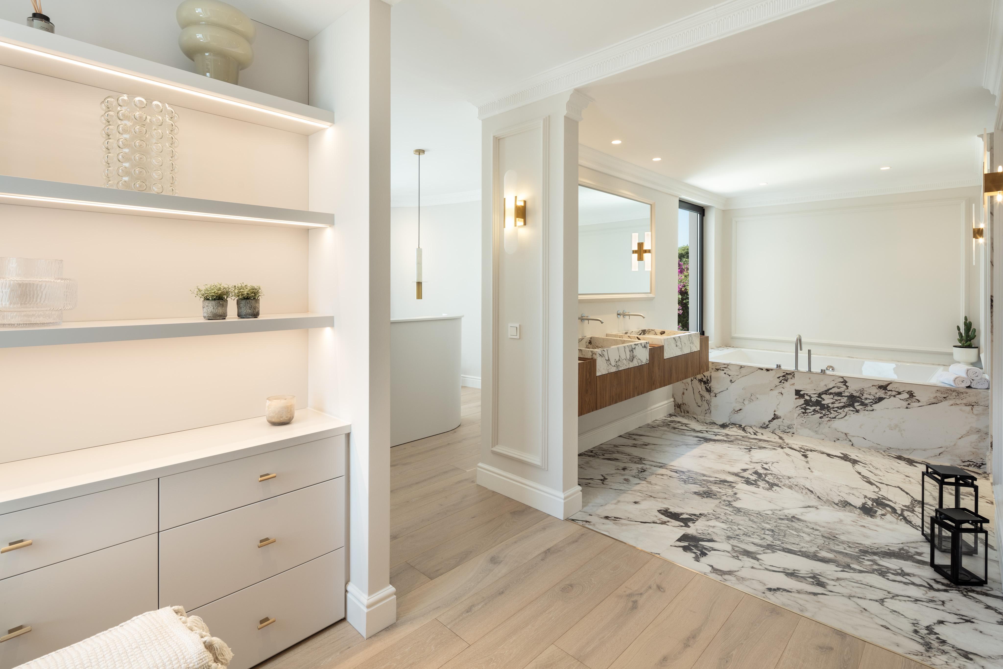 Inside, elegance takes center stage. A circular theme runs throughout the property, with arched windows linking the living room to the terrace, sumptuous wood flooring, and arches that add character to every room. The fully-equipped kitchen boasts impeccable joinery, high-quality marble finishes and a central island that becomes the heart of the home.