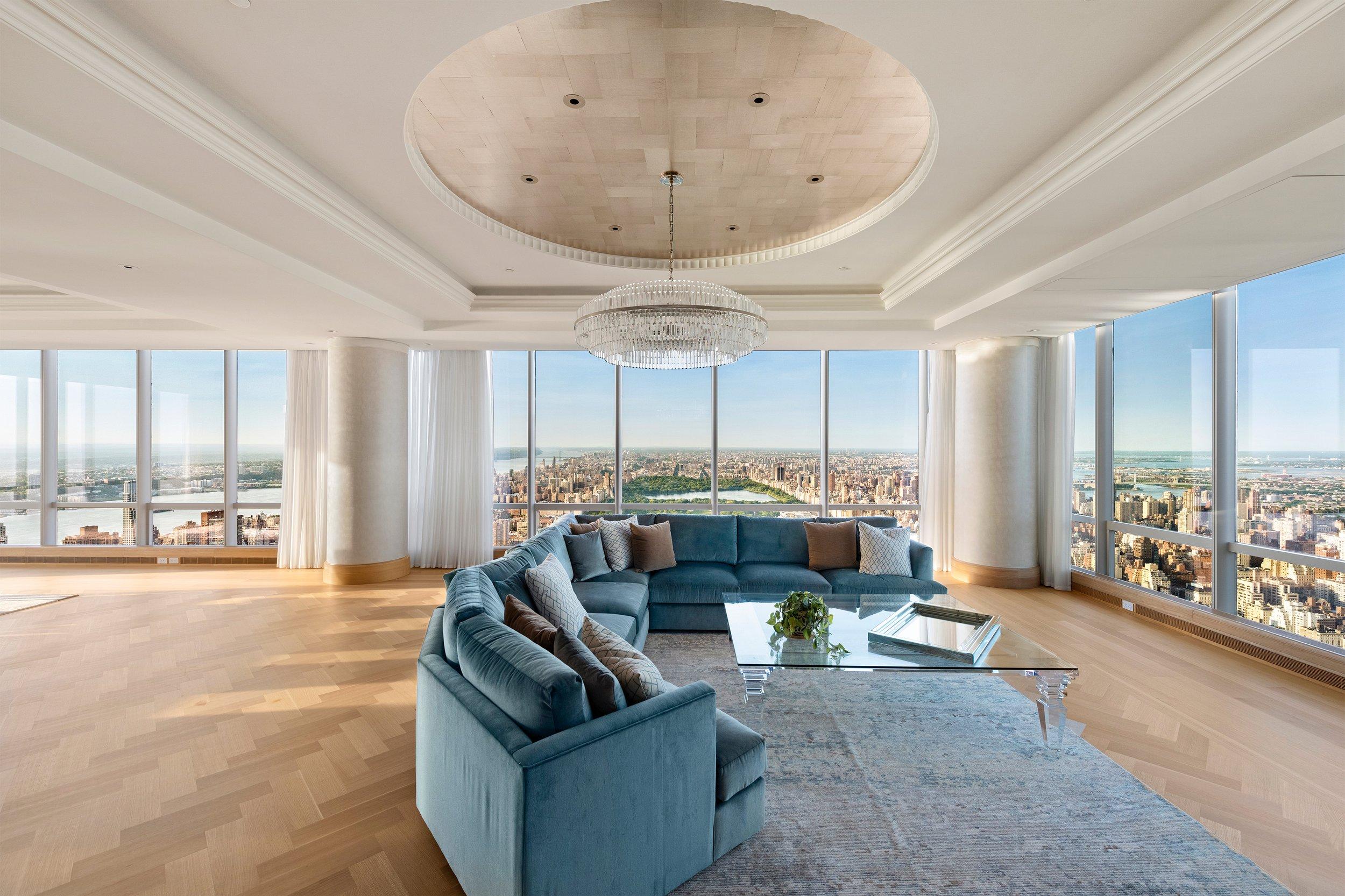 Danish designer Thomas Juul-Hansen was selected to design the interiors of ONE57 for his hands-on approach to residential living. Walls of glass illuminate expansive homes of extraordinary scale and light while framing breathtaking views of Central Park, the New York skyline and beyond. Each residence has been meticulously planned with gracious layouts and wide dimensions. They boast oversized doors and soaring ceiling heights, providing a glamorous stage for entertaining guests. Materials of the highest quality are provided: rich rosewood flooring in a French herringbone pattern or select rift-sawn white oak, slabs of Italian marble, and custom hardware and light fixtures.