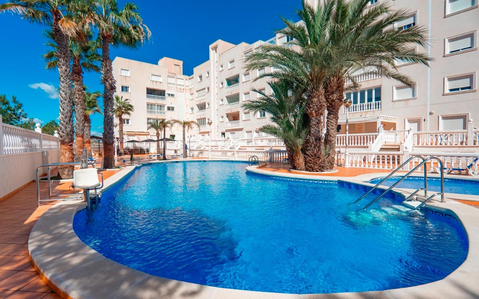 BRIGHT 2-BEDROOM APARTMENT WITH POOL, MOUNTAIN AND SEA VIEWS IN COLINAS REAL, EL EDEN – GUARDAMAR DEL SEGURA Experience relaxed Mediterranean living in this charming two-bedroom fully furnished apartment, located in the highly desirable Colinas Real development within the tranquil El Eden urbanisation of Guardamar del Segura. Overlooking the lovely communal pool and surrounded by open countryside views, this home features a sunny private terrace and offers easy access to the town’s golden beaches—combining comfort, convenience, and classic coastal charm in one inviting package. Key Features 2 Double Bedrooms | 1 Bathroom | Second-Floor Apartment with LiftSpacious Living Area with Terrace Overlooking Pool, Mountain and Countryside views Independent Kitchen with Separate Utility RoomJust Minutes from Guardamar BeachPrivate Garage and Storage RoomSouth-Facing OrientationSolarium with sea views Property Details Step into this inviting Second-floor apartment in the desirable Colinas Real complex, offering an ideal retreat for full-time living, holidays or rental investment. The property features a bright lounge-dining area opening onto a private terrace with relaxing views over the pool and open countryside – the perfect spot for morning coffee or an evening glass of wine. An independent kitchen with an adjoining utility room provides practical space for daily living, while two well-proportioned double bedrooms and a full family bathroom complete the home’s comfortable layout. The residence includes lift access and is set within a beautifully maintained complex with a large communal swimming pool, landscaped gardens and sunbathing areas for residents to enjoy year-round. Location & Lifestyle Located in the tranquil El Eden urbanisation, this home offers peaceful surroundings yet sits close to all the attractions of Guardamar del Segura. Stroll or cycle along scenic laneways to the town centre – around 20 to 30 minutes on foot, or just a few minutes by car or local bus. Guardamar is renowned for its blue-flag beaches, charming promenade, bustling markets and excellent restaurants serving traditional Spanish and international cuisine. Golf lovers will appreciate being within easy reach of several premier courses such as La Marquesa Golf (10 minutes) and La Finca Golf Resort (15 minutes). For international travel, Alicante–Elche Airport is conveniently only 30 minutes away, making this an ideal lock-up-and-leave coastal home or rental investment. Features Second-Floor Apartment with Lift AccessColinas Real Community with Lovely Pool & GardensApprox. 30 minutes to Alicante AirportPopular El Eden Bar Nearby: Full Amenities in Guardamar TownIdeal for Holidays, Investment or Year-Round Living Schedule your in-person or virtual viewing today and discover the best of Costa Blanca living in this beautiful Colinas Real, El Eden apartment.