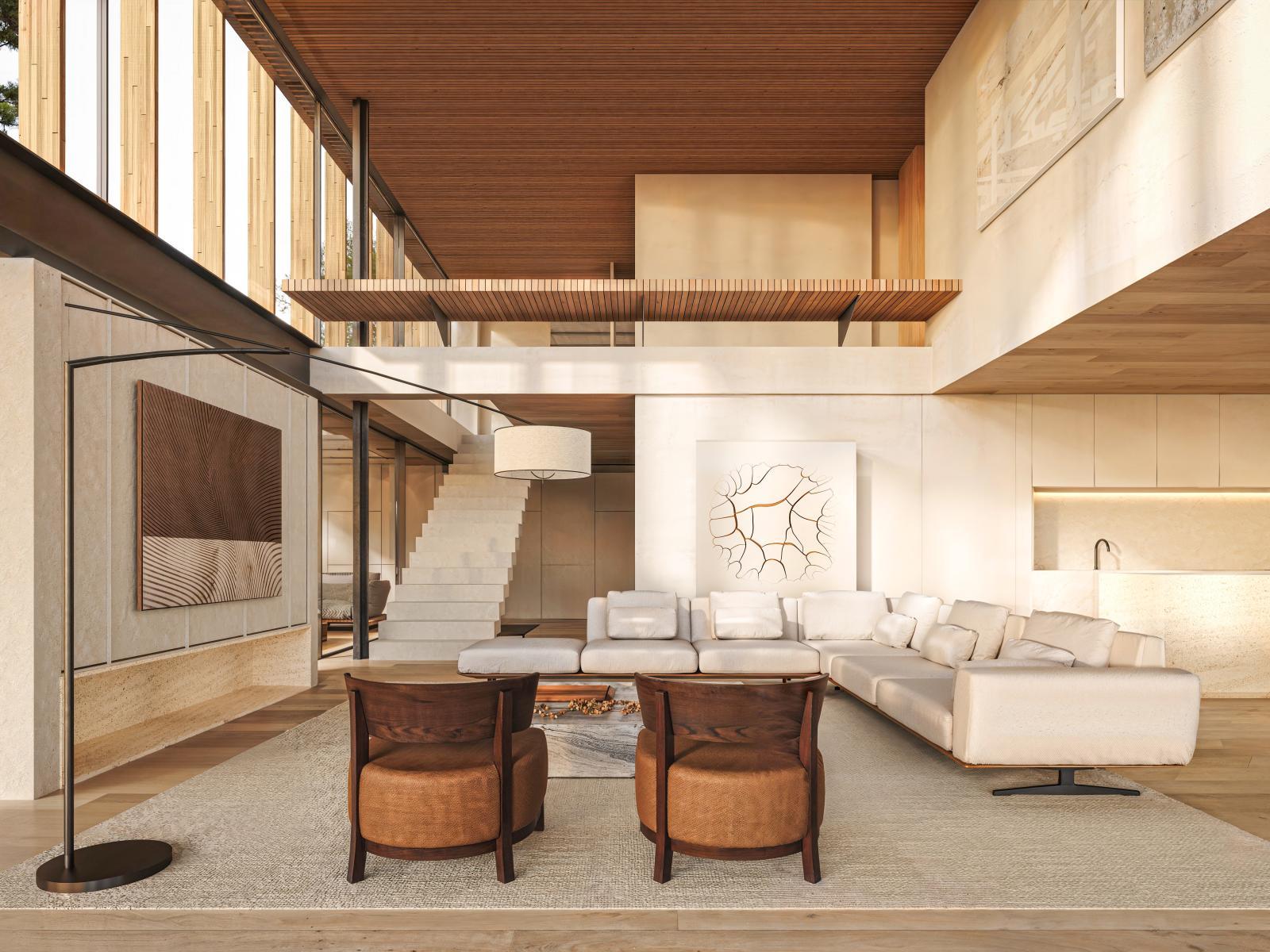 With plenty of light, sophisticated finishes with a unique symbiosis between the contemporary and the rustic, favouring the use of wood. With covered parking for two vehicles.