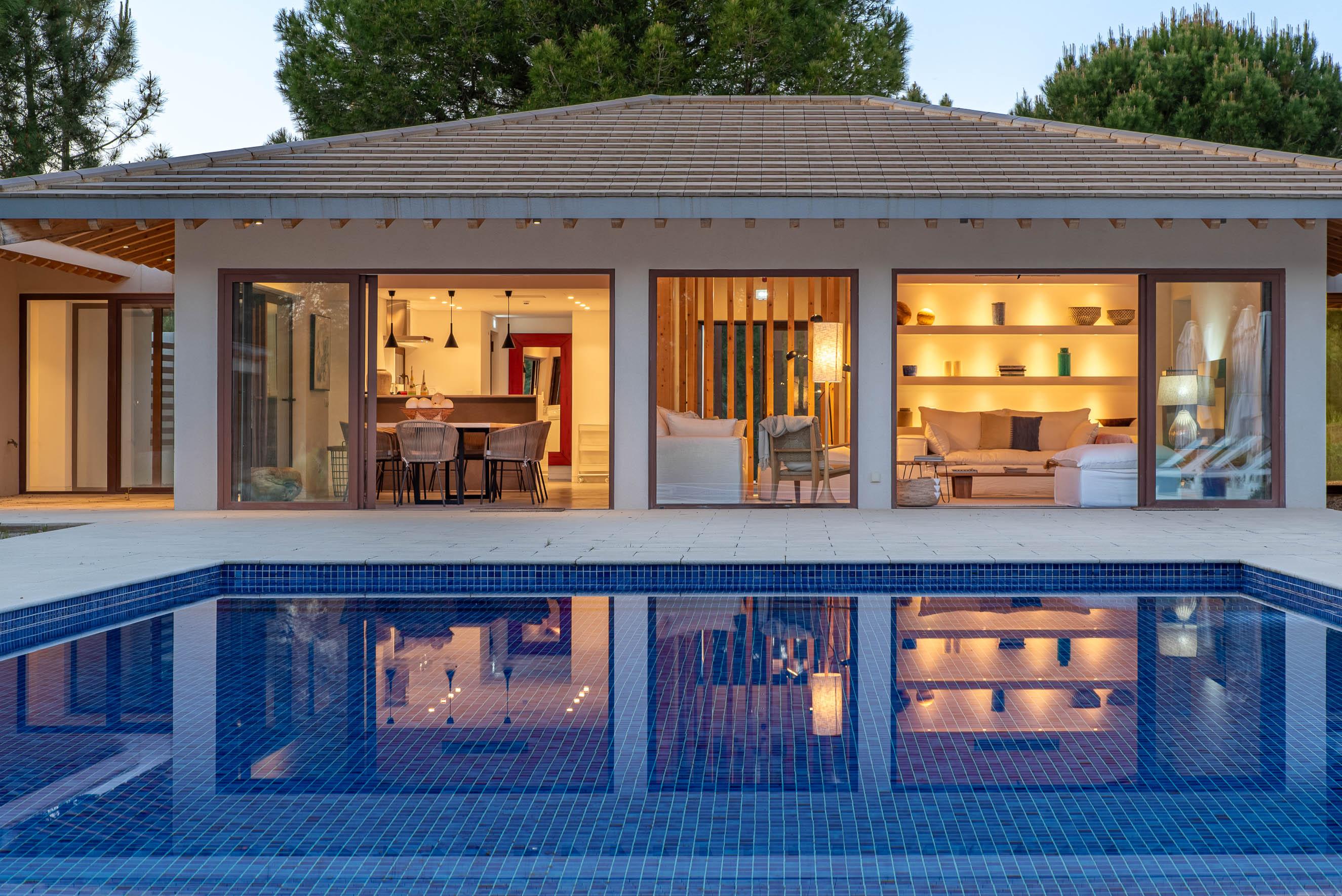 The House is spread over two blocks. A main villa with open space kitchen for the dining and living room, guest bathroom, two bedrooms with a shared bathroom and a suite. A villa with independent access with the master suite. Both villas are oriented to the 72m2 swimming pool (6×12) and to the outdoor garden, where they privilege the native plants that give total privacy to the villa.