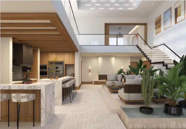 These magnificent 5-bedroom houses, which range in size from 12,160 to 12,441 square feet of total living space, are rare and exceptional (6,740 to 6,871 square feet under air and 5,420 to 5,570 square feet of exterior terrace). Glass walls open up the living room to a wide shaded terrace with an infinity-edge pool that spills out onto your own private beachfront.