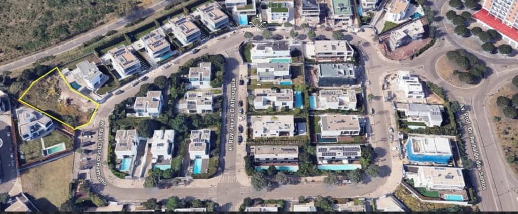 Plot of land in Vila Utopia with approved project.\r\n\r\nThis is one of the last available plots in this location to build your dream home. With an area of 1,273 sqm, it allows for the construction of a detached villa of up to 778 sqm, spread over two floors plus a basement.\r\n\r\nBasement Floor\r\n\r\n140 sqm garage for 6 cars with access via a car lift, optimizing the use of the terrain.\r\nNightclub/Lounge and Gym areas (47 sqm and 21 sqm).\r\nStorage area (4.25 sqm).\r\nGuest toilet.\r\nElevator.\r\n\r\nFloor 0 (Ground Floor)\r\n\r\nMain entrance featuring a 4.75m high pivoting glass door.\r\n77 sqm Living and Dining Room with 6-meter double-height ceilings.\r\nThe living area is separated from the indoor pool area (49 sqm) by glass partitions of the same height (6 meters).\r\nCinema room 38.2 sqm.\r\nSemi-open kitchen, fully equiped with12.25 sqm\r\nGuest toilet and Elevator.\r\nMaster Suite: 30.35 sqm + 9.97 sqm bathroom.\r\nSuite 1: 25.26 sqm + 6.14 sqm bathroom.\r\nSuite 2: 21.52 sqm + 4.28 sqm bathroom.\r\n\r\nFloor 1\r\n\r\nAdditional parking for 2 cars (41 sqm).\r\nOffice: 27.8 sqm.\r\nGuest toilet and Elevator.\r\nSuite 3: 21.53 sqm + 4 sqm bathroom.\r\nSuite 4: 17.7 sqm.\r\n\r\nNote: If such an extensive area is not required, the project can be adapted to exclude the basement level.\r\n\r\nVila Utopia is a residential concept comprising 45 detached, single-family villas, featuring contemporary architecture designed by renowned national architects.\r\n\r\nIn a setting that is increasingly rare between Lisbon and Cascais, this plot stands out for its natural surroundings, tranquility, and exclusivity—ideal for those seeking quality of life without sacrificing the convenience of a prime location near all types of services and transport.\r\n\r\nLocated just a 10-minute drive from Lisbon city center and the best international schools, and less than 15 minutes from the main beaches of the Cascais Line.\r\n\r\nKnown for its mild climate, Oeiras is one of the most developed municipalities in the country. It enjoys a privileged location just minutes from Lisbon and Cascais, offering superb views over the river and sea. Charming restored buildings coexist in perfect balance with modern architecture. The Passeio Marítimo (Seafront Promenade) is a premier leisure space, providing direct access to the fantastic beaches along the coast.