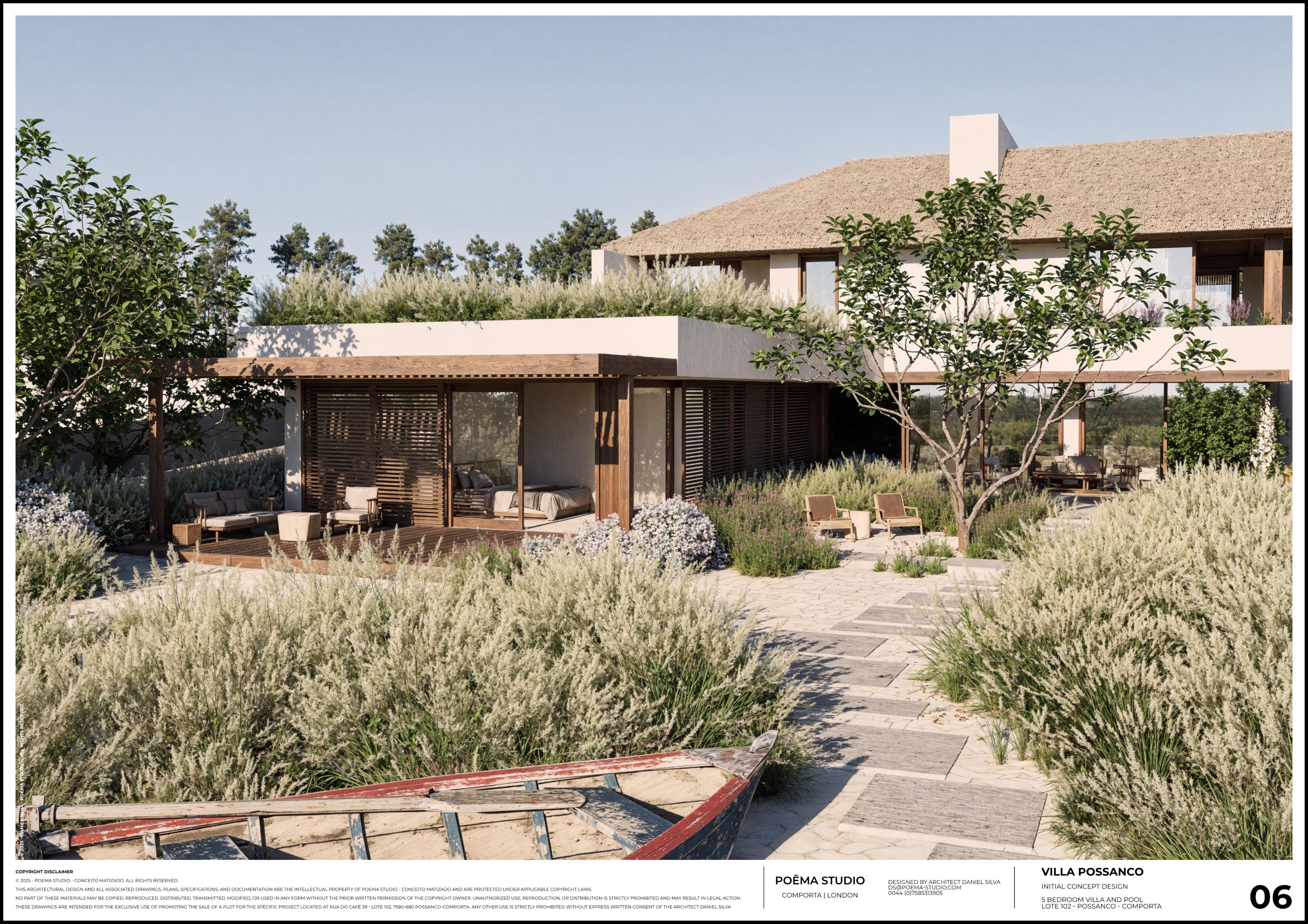 The site presents the opportunity to develop a truly distinctive architectural project with strong ties to the local vernacular, reinterpreted through a contemporary lens. An initial conceptual project is now available, created by an architect born and raised in Comporta, with a global portfolio in luxury residential and hotel projects. Their services can be made available to lead the entire development and management of the project, offering a simplified and complete design and construction process.
