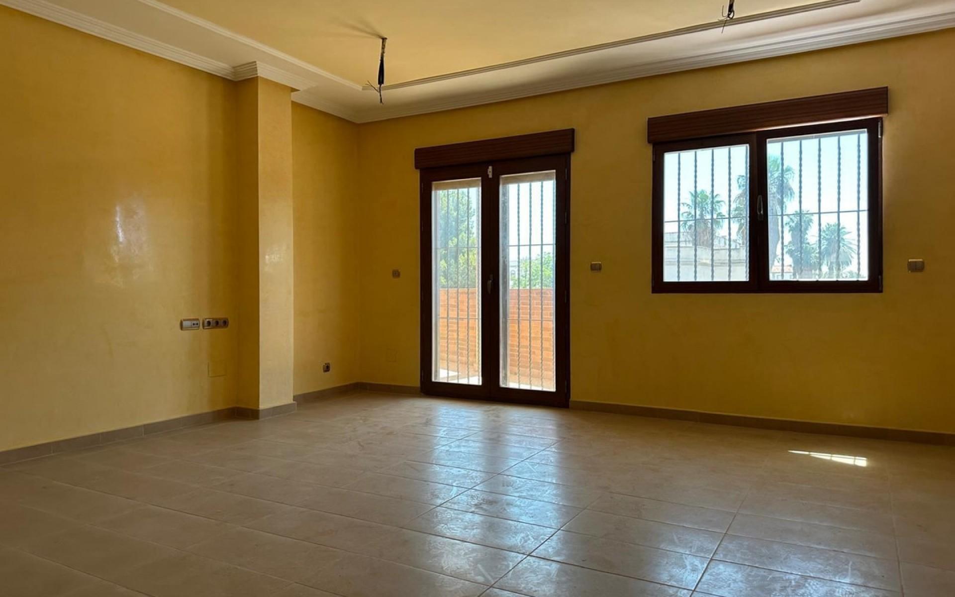 Stylish ground floor apartment – just 320 meters from the Mediterranean Sea Just steps from the calm waters of the Mar Menor, in the heart of charming Los Alcázares, this spacious ground floor apartment awaits you who dream of a comfortable life near the sea. Here you live with both proximity to the beach and the pulse of the city – in a home where every square meter has been planned with care. With a generous living space of 178 sq m, the apartment offers four spacious bedrooms and two fully tiled bathrooms, making it perfect for both family life, holiday accommodation or as a place to enjoy life all year round. The open plan between the living room and kitchen creates a natural gathering point, where light flows in from large windows and creates a wonderfully inviting feeling. The outdoor spaces are something special. There is a 33 sqm private patio – perfect for nice meals in the shade, relaxing with a book or perhaps a small lemon tree in a pot. In addition, the home has a large balcony where you can enjoy the warm evenings and feel the sea breeze sweeping past. Three parking spaces included. The area is vibrant all year round, offering everything from local markets and tapas bars to promenades, cycle paths and small boutiques. All this just 320 metres from the sea, where sandy beaches meet sparkling waters and evening strolls easily become a daily routine. This is more than just a place to live, breathe and enjoy. Welcome home to the Mediterranean.