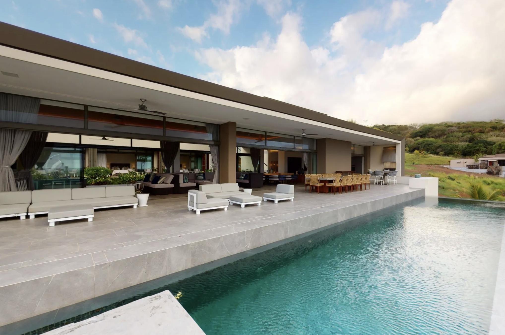 Outdoors, a panoramic terrace stretches across the full length of the villa, featuring a spectacular infinity pool with mesmerizing ocean vistas. At the center of the home, a sunlit atrium garden offers a second, more intimate outdoor retreat.