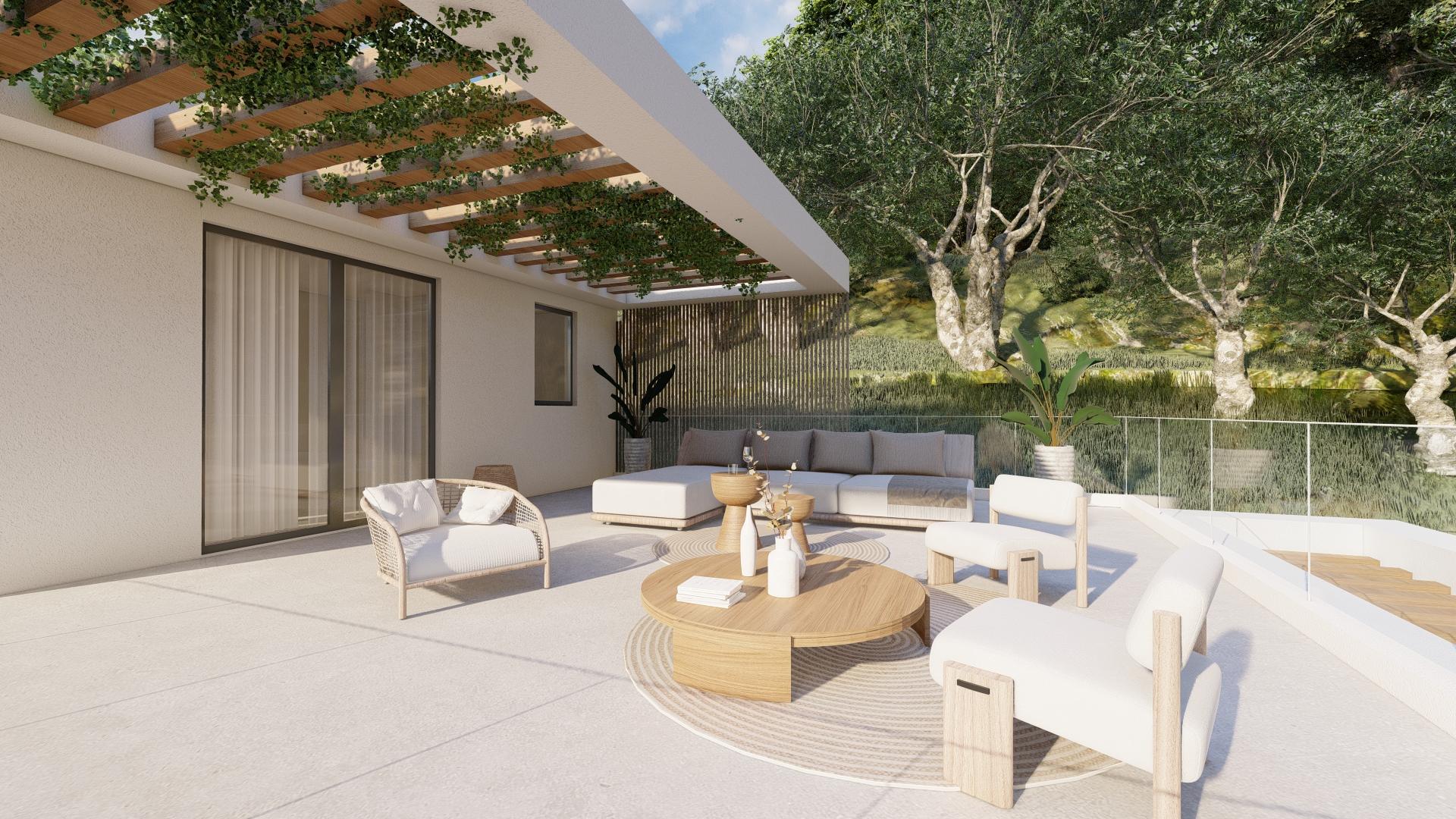 Perched on the heights of the sought-after Nissaki area, this nearly completed villa (expected delivery summer 2025) perfectly blends Mediterranean elegance with modern comfort. Offering 218 sqm of living space on a 2,370 sqm plot, it features bright and airy interiors thanks to large floor-to-ceiling windows, four spacious bedrooms each with en-suite bathrooms, and an open-plan kitchen flowing into a welcoming living area.