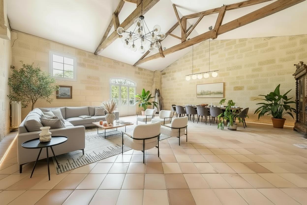 Offered at €583,000 including agency fees (6% VAT included, buyer’s share; net seller price €550,000), this manor represents a rare opportunity on the Bordeaux real estate market.