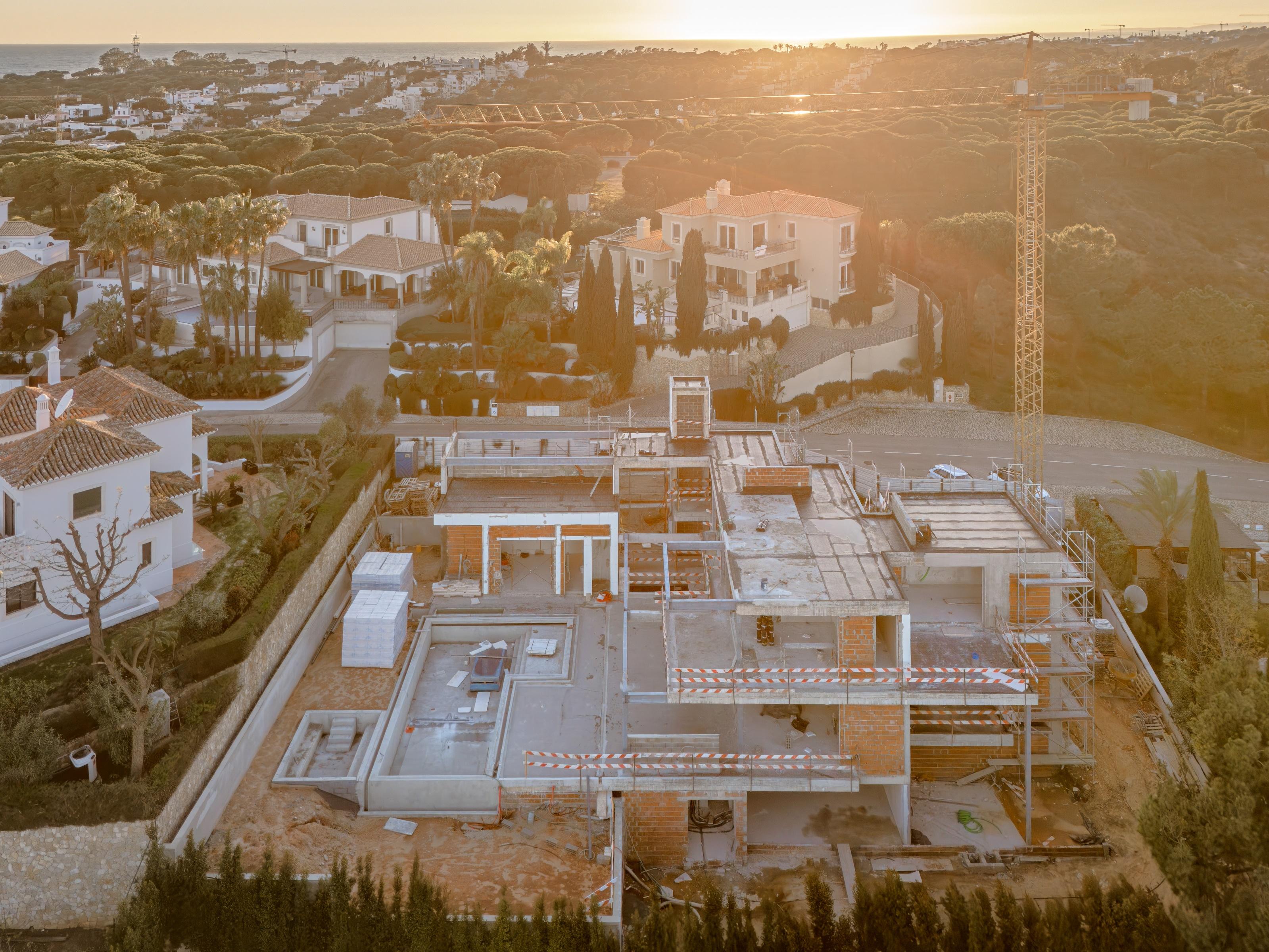 4+1 bedroom villa under construction, with 768 sq m of gross construction area, swimming pool and garden, set on a 1,220 sq m plot, located in Encosta do Lago, Quinta do Lago, Algarve.