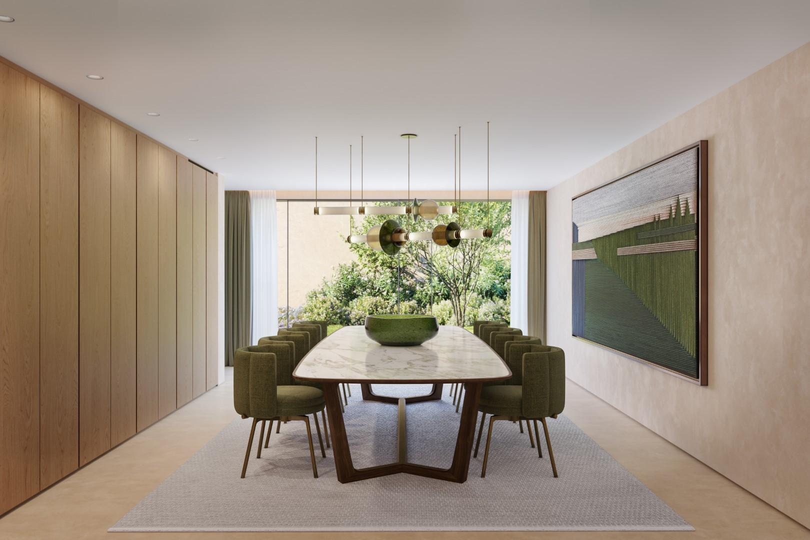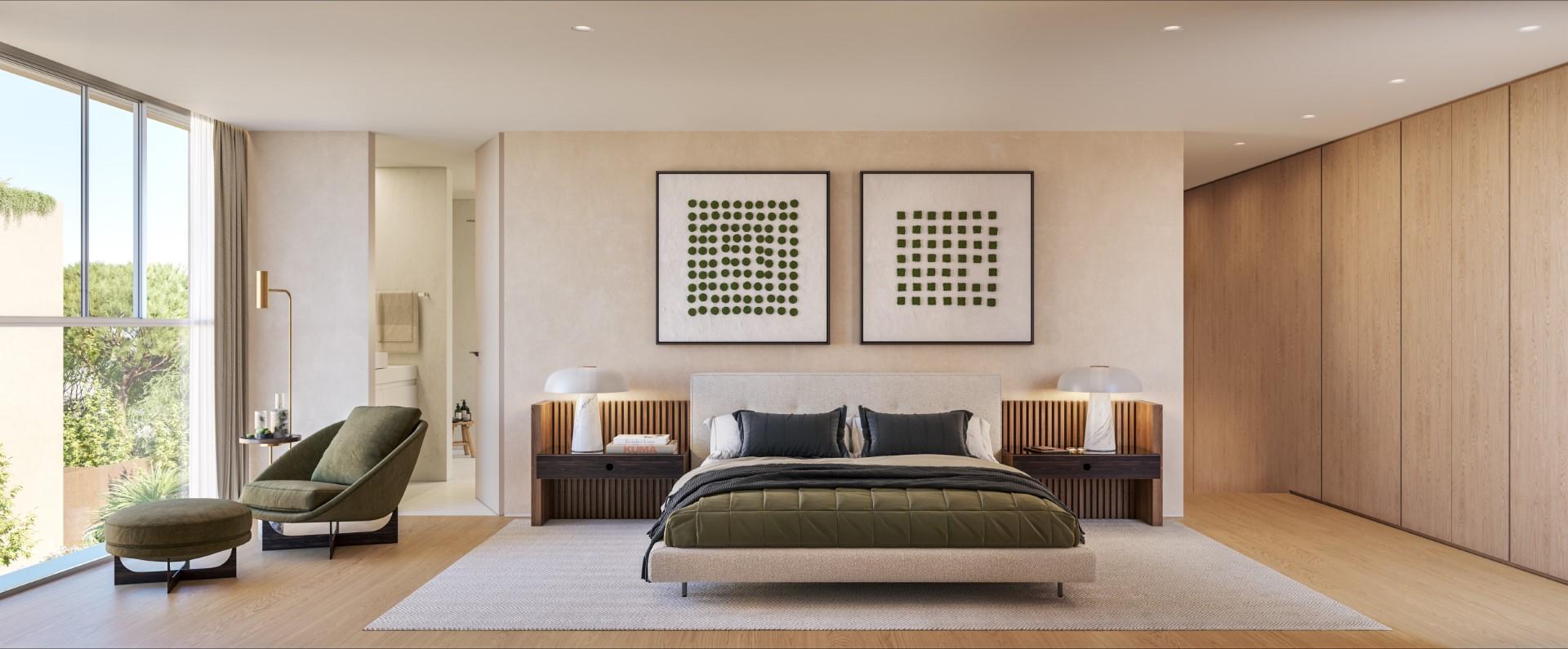 Located in Cascais, minutes from the center of Lisbon, the Plátanos development is a condominium of independent houses that combines nature and sophistication, elegance and a striking lifestyle. Located in a comforting environment, Plátanos is a reference project in its quality, a treasure in the care of nature.Three-storey villas defined by a shaft of light running through the whole building and creating a ceiling height of over 6.5 metres.The access is on the lower floor and illuminated by an interior garden that keeps vegetation ever present. Behind, there is a sunken outbuilding with garden access that can be converted into a bedroom suite or den.Upstairs, the dining room and its doubleheight ceilings are illuminated by a window wall and have an adjoining space that can be used as an office, library or wine cellar.On the opposite side, the kitchen opens onto the interior garden.The living room gives access to the outdoor garden, where the swimming pool runs right up to the concrete wall. The private outdoor areas vary between 247sqm and 412sqm.On the upper floor, the personal area has two en-suite bedrooms and a master suite that is is lit up by the interior garden. Two walk-in wardrobes each lead to independent washbasins that connect with the bathroom area – a central space also opening onto the interior garden.