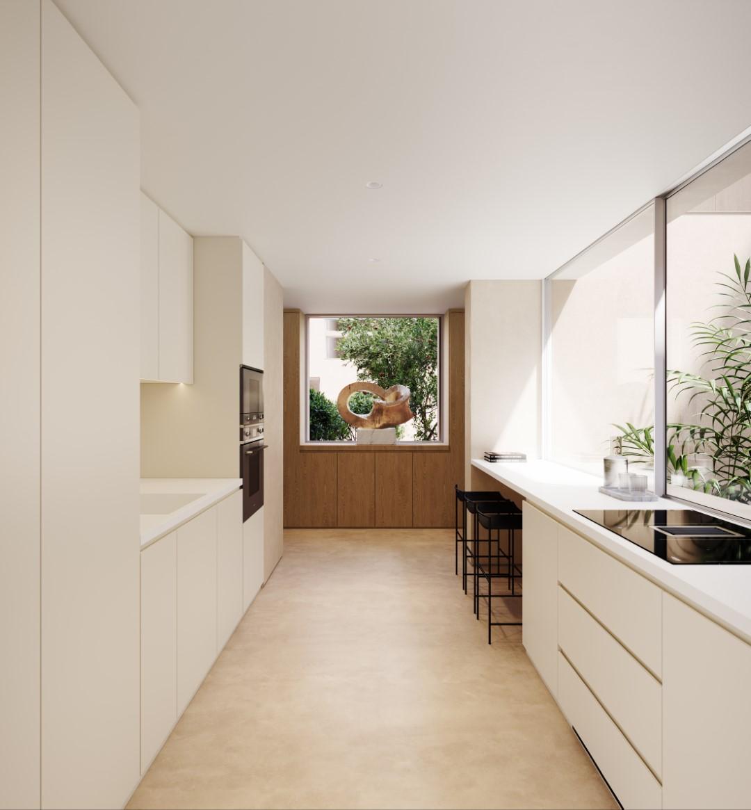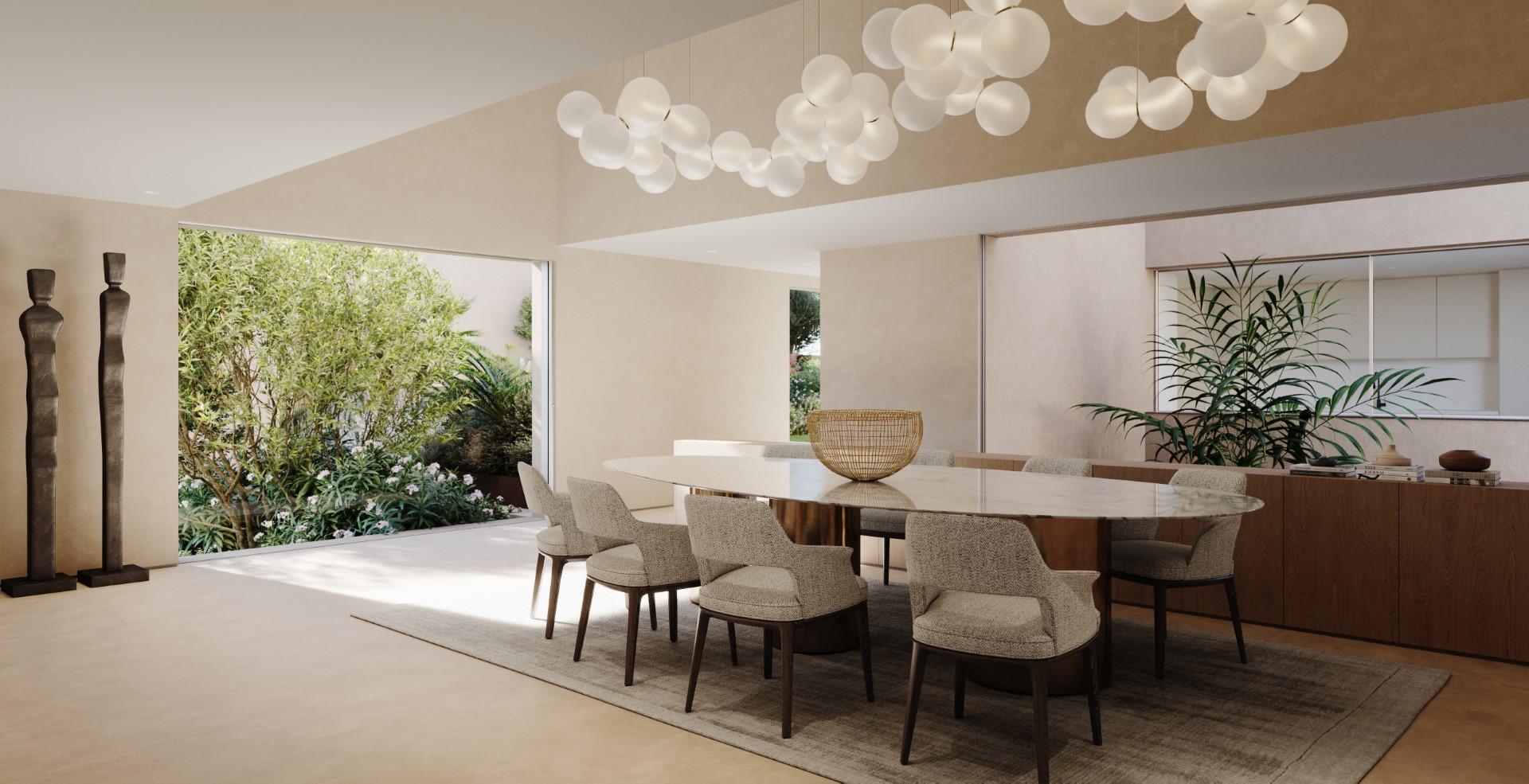 Located in Cascais, minutes from the center of Lisbon, the Plátanos development is a condominium of independent villas that combines nature and sophistication, elegance and a remarkable lifestyle. Located in comforting surroundings, Plátanos is a project of reference in its quality, a treasure in the care of nature. The entrance is on the top floor, where there are two suites and a master suite. The master suite is located at the end of the corridor and is marked by the natural light and vegetation of the second patio. Going down to the ground floor, the kitchen, dining room and living room alternate in symbiosis with the interior gardens, allowing for an exceptional relationship with the outdoors and nature. The living room, which opens onto the garden, is framed by the swimming pool. On the lower floor, there is a semi-underground room opening onto the first patio of the house, which could be adapted into a suite or games room. The private outdoor area of the Type A villas ranges from 243 m2 to over 350 m2 and includes a garden, terrace and swimming pool.