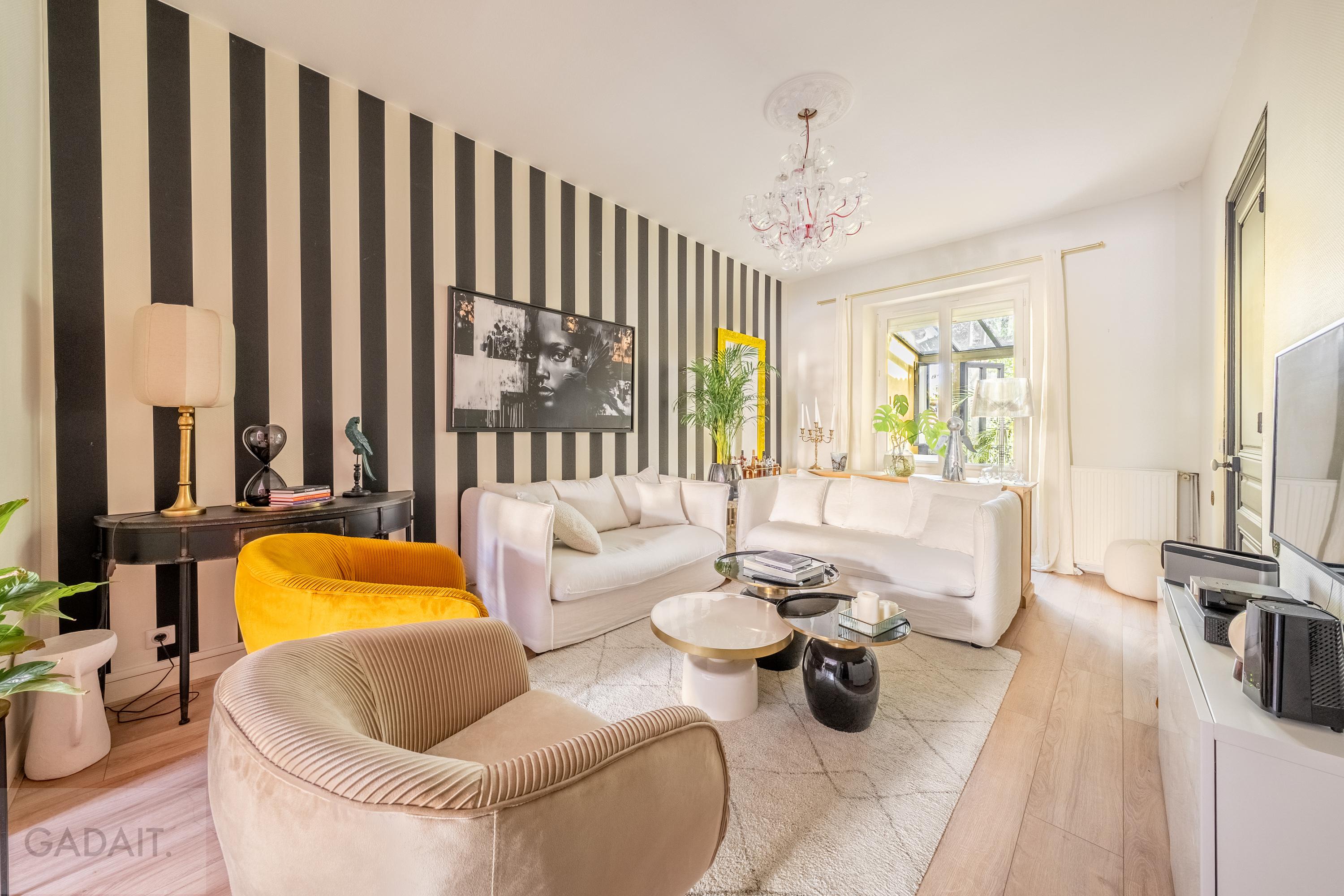 Outside, a 510 m² fenced plot suitable for a pool, a 19 m² outbuilding, and a garage complete the property. Recent renovations include roof, insulation, electrical system, and heat pump, ensuring modern comfort and energy efficiency.