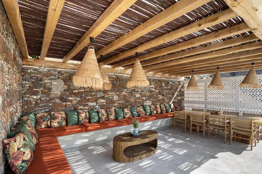 Located in the exclusive Seaside Resort and Villas complex, on the western side of the island of Syros, in Harasonas-Poseidonia. This villa, built on a 1,500 m² plot, offers more than 200 m² of indoor living space on two levels. It can accommodate up to 10 people in its 5 bedrooms and 5 bathrooms, decorated with refinement and elegance.