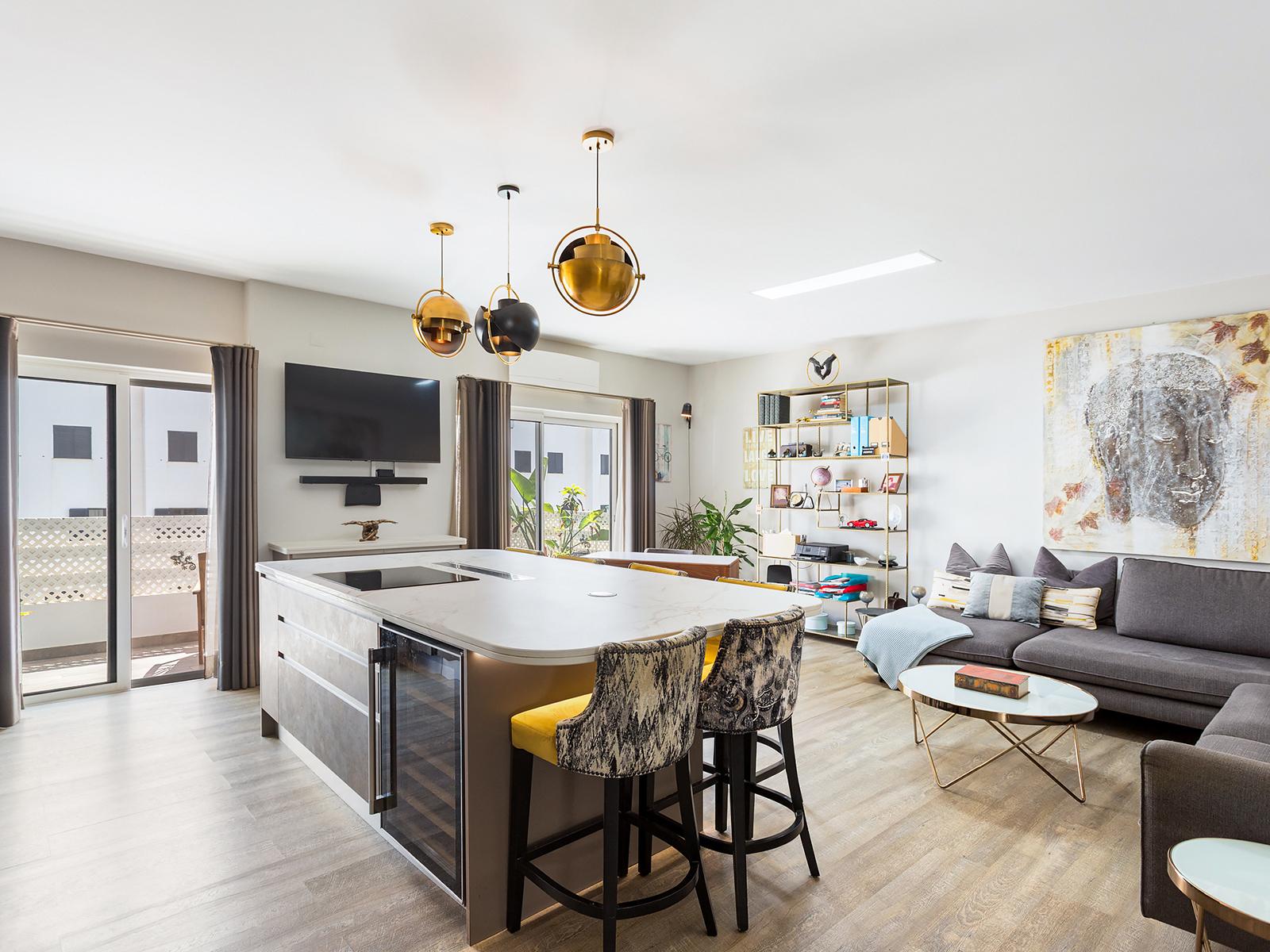 2-bedroom apartment with 99 sqm of gross private area, fully renovated and customized, in a private condominium with swimming pool, parking, elevator and excellent location on the 3rd floor, located in Quinta do Romão, just 2 minutes walking from Praia de Vilamoura and Praia de Quarteira, Algarve.