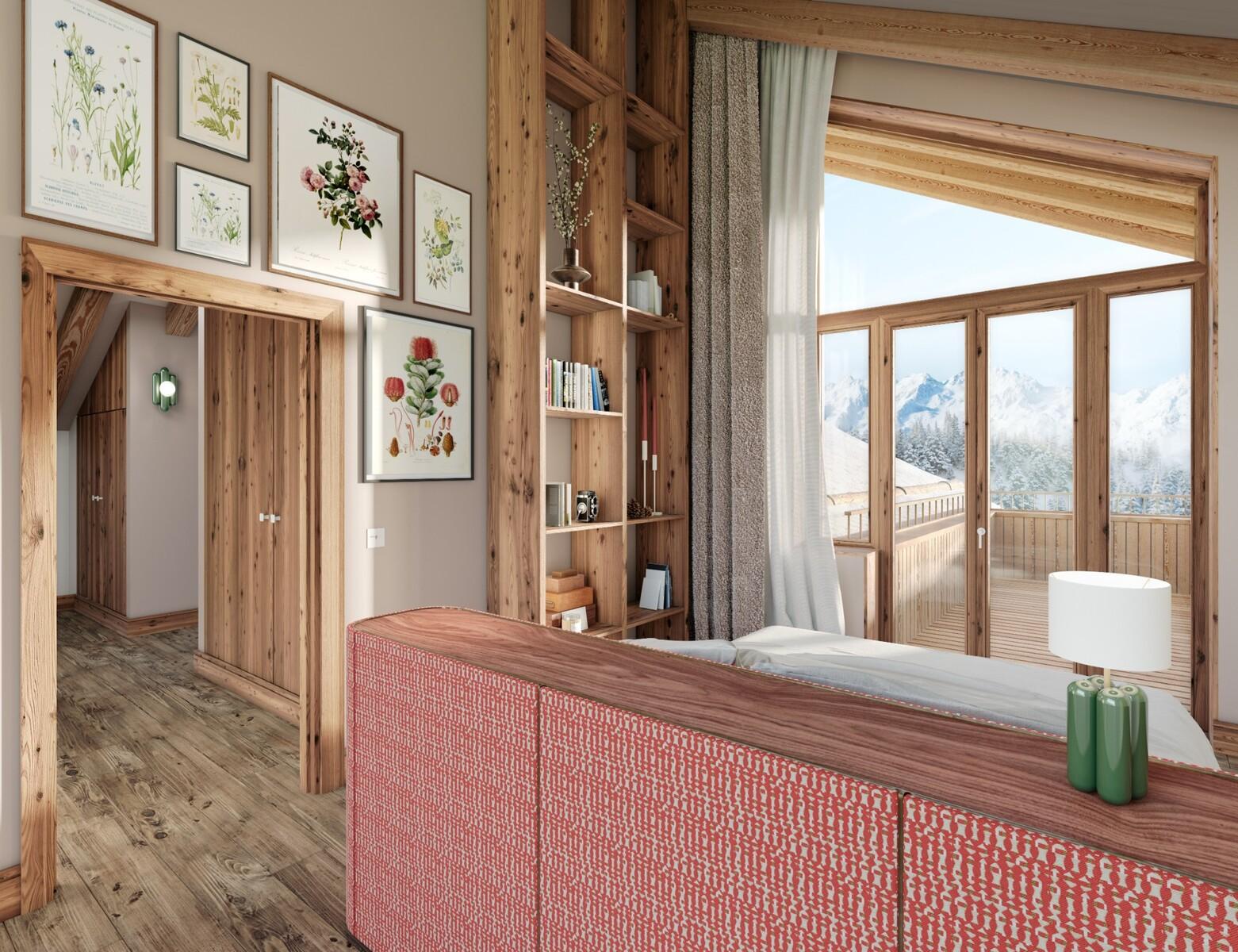 Designed for both comfort and conviviality, this chalet features 5 bedrooms, including a spectacular 40 m² master suite occupying the entire top floor, complete with a dressing room and private terrace. The lower level hosts 4 en-suite double bedrooms and a 4-bed dormitory, ensuring absolute privacy and convenience for family and guests.