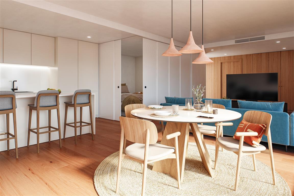 New studio apartment, with 44 sqm of gross private area, balcony and parking, in the Antas Atrium – 2nd phase condominium, located on Alameda das Antas, Porto. All units feature high-quality finishes and materials, fully equipped kitchens, thermal and acoustic insulation, and storage.
