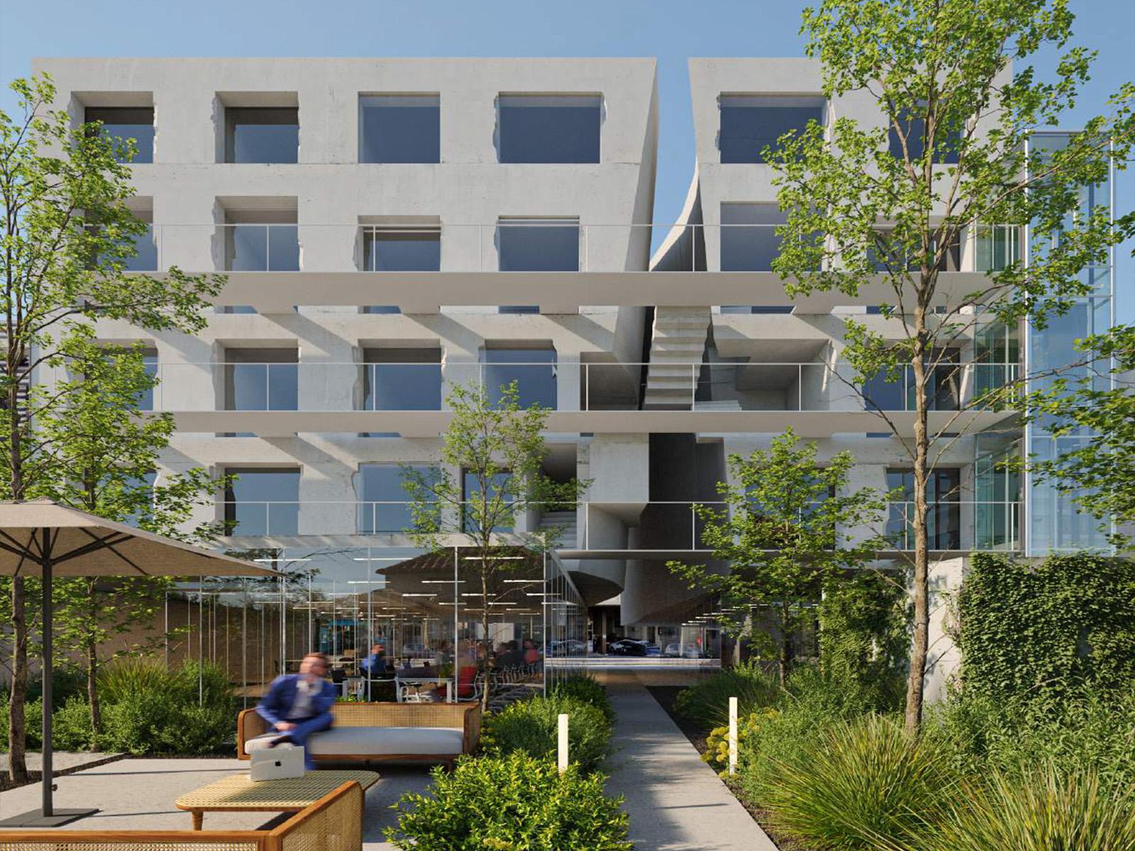 OCEAM Chapter One, signed by the architects Cannatà & Fernandes, is distinguished by its contemporary industrial aesthetic, with exposed concrete, strong volumes and a central crack that marks the building. The interior includes several exclusive amenities, such as coworking, coffee shop, event areas, bicycle and surfboard parking, public and private gardens, providing a complete experience in one of the most innovative projects in Matosinhos.