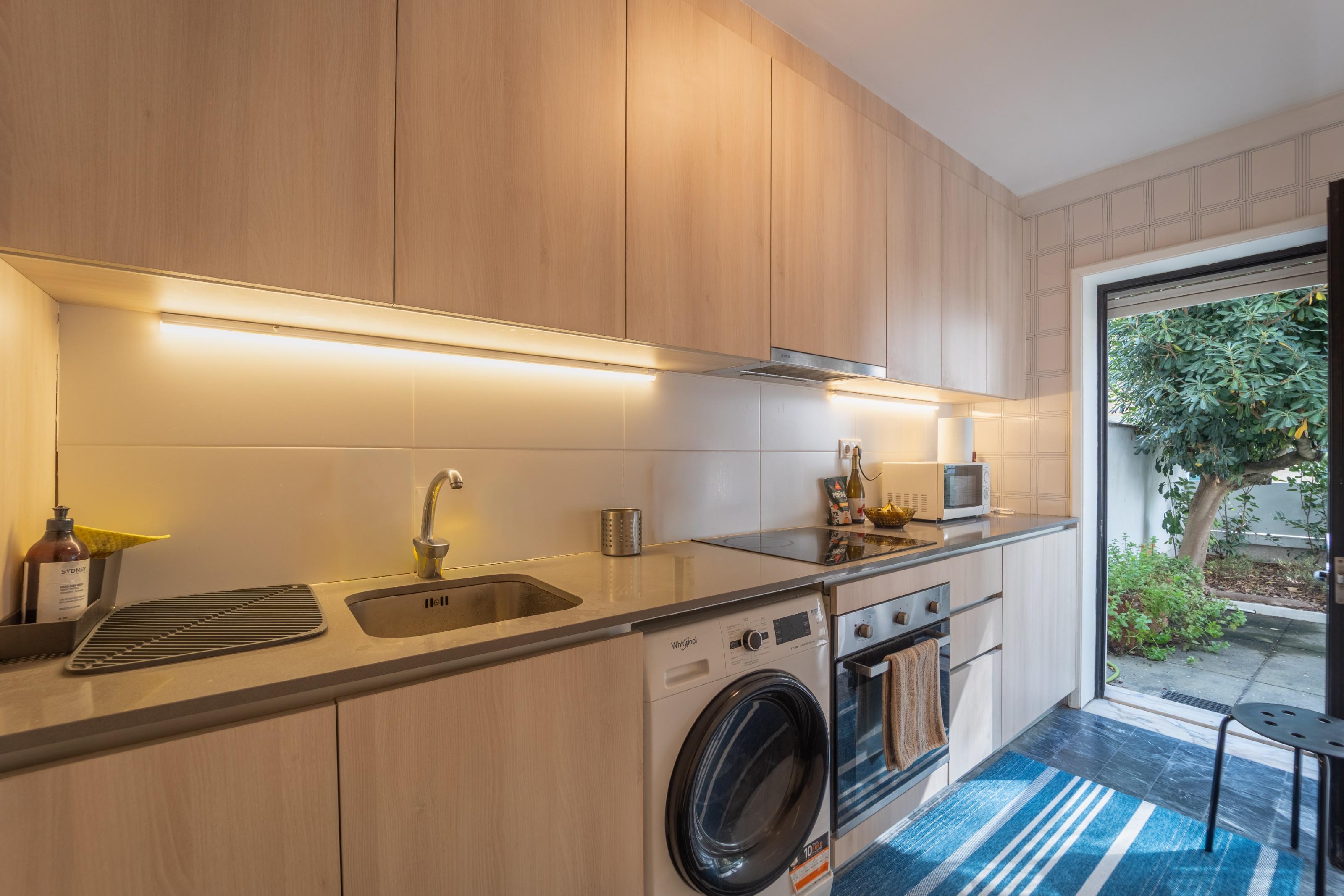 The flat has a functional and welcoming distribution, with an independent, equipped and well-organised kitchen, a full bathroom and a large and bright living area, which benefits from good sun exposure. The small terrace offers a quiet space, ideal for al fresco dining, reading or simply relaxing. The presence of a garage adds value and convenience, making this T0 an excellent option for both own housing and investment.