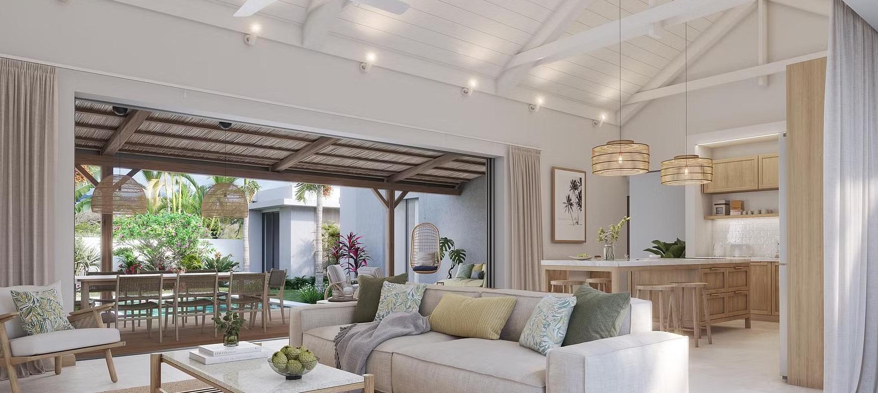 This residence offers three spacious suites, each with its own bathroom, guaranteeing privacy and comfort. The bright living spaces open onto a carefully landscaped tropical garden, featuring a private swimming pool and a traditional Mauritian gazebo, perfect for relaxing outdoors.