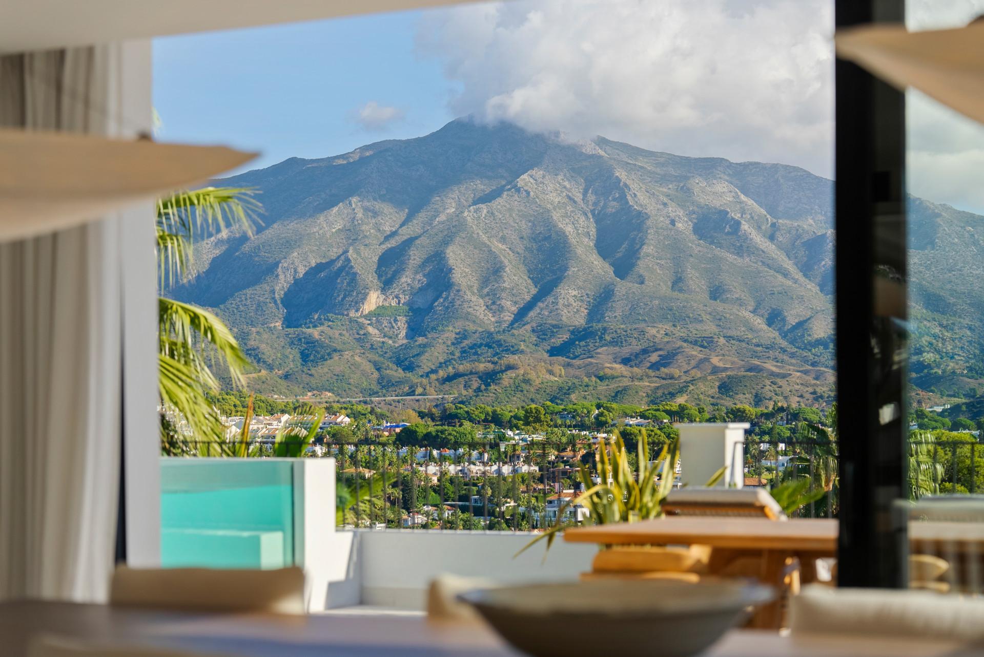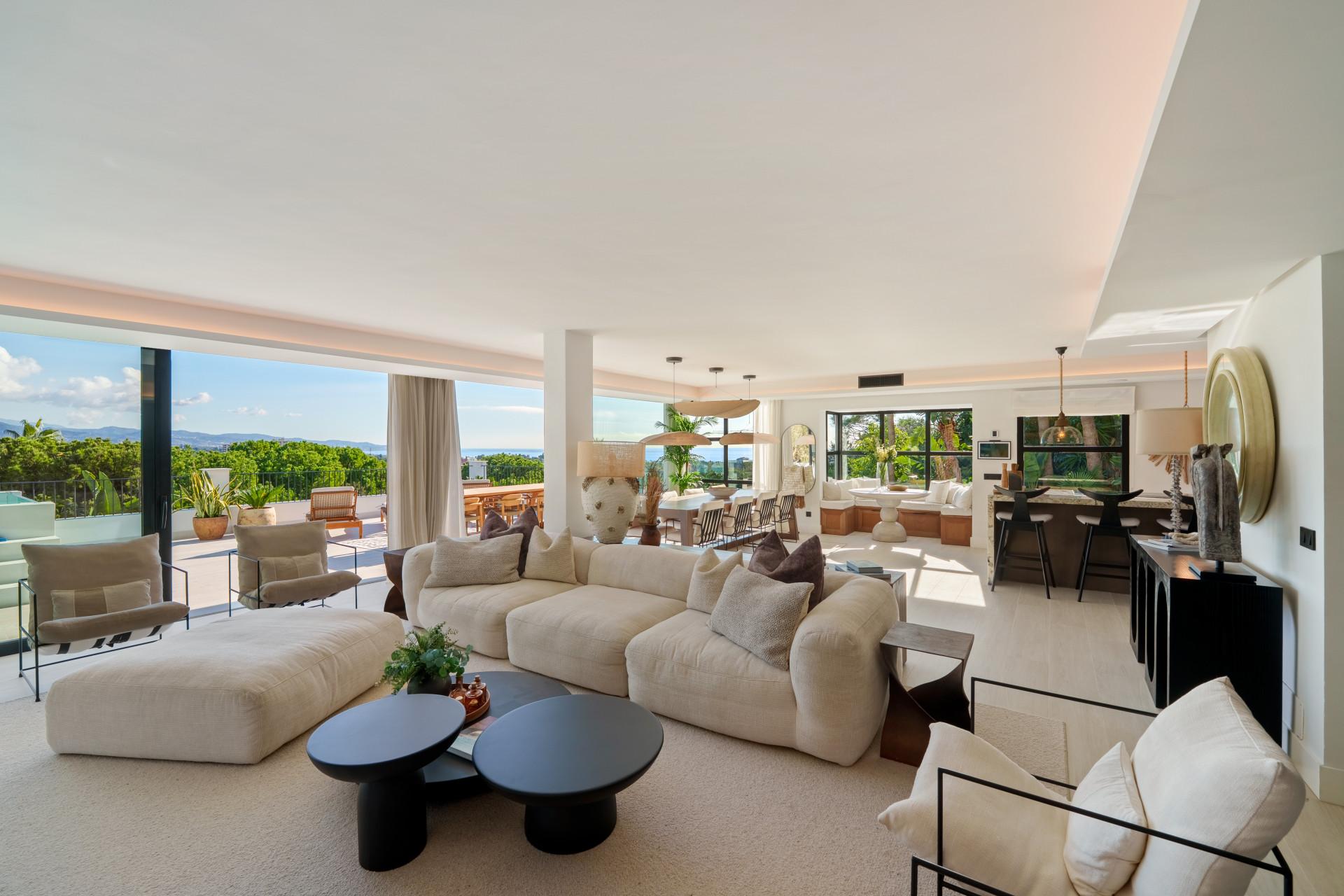 Villa Cielo Mar is an exquisite property located in the prestigious Nueva Andalucía area of Marbella. This luxurious villa, with a built size of 965 square meters and set on a generous plot of 1,474 square meters, offers six spacious bedrooms and nine bathrooms, making it ideal for both family living and entertaining. The villa features a private terrace and a pool, providing a serene outdoor space with stunning panoramic views of the sea, mountains, and golf courses. With six parking spaces, this property ensures convenience for residents and guests alike.