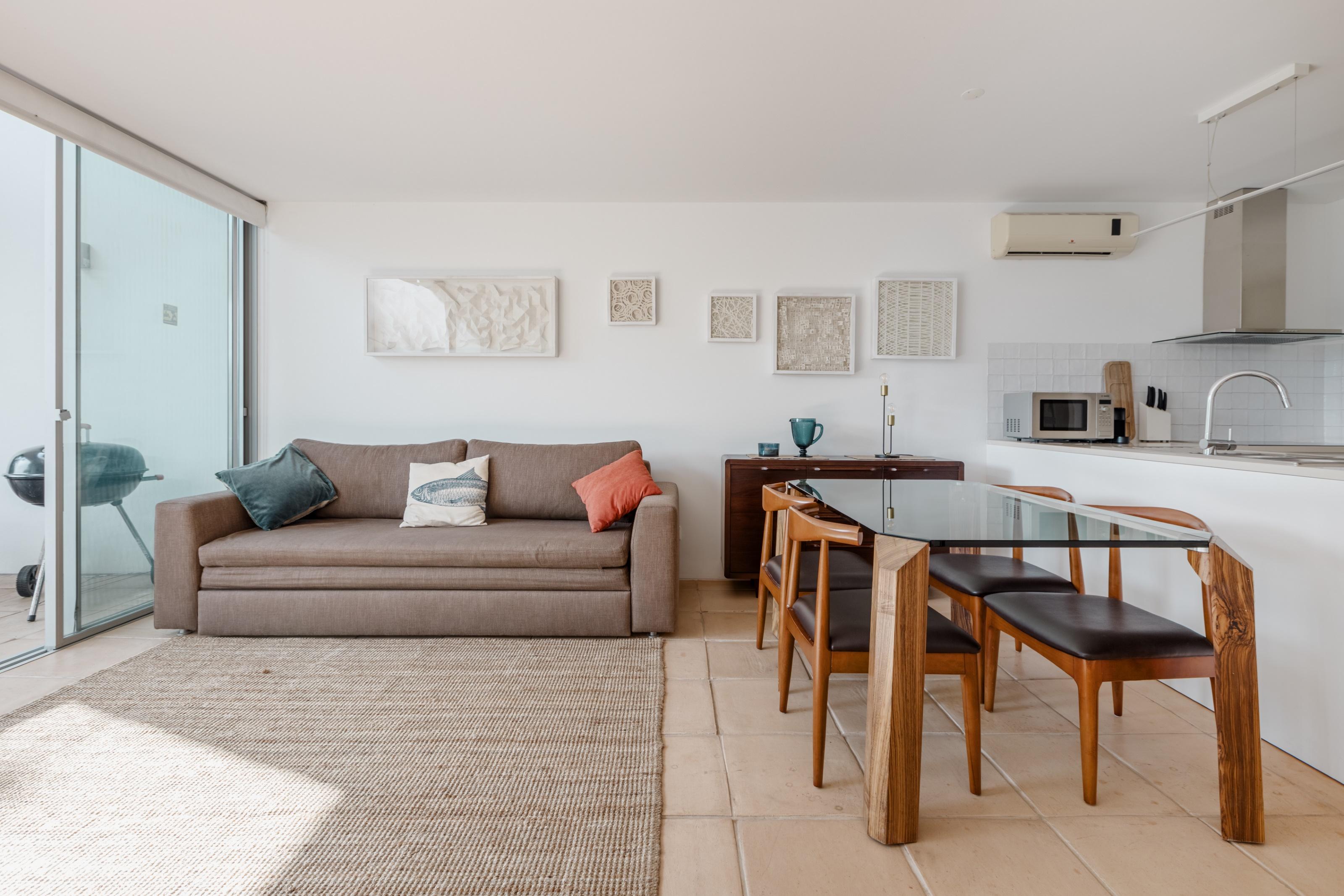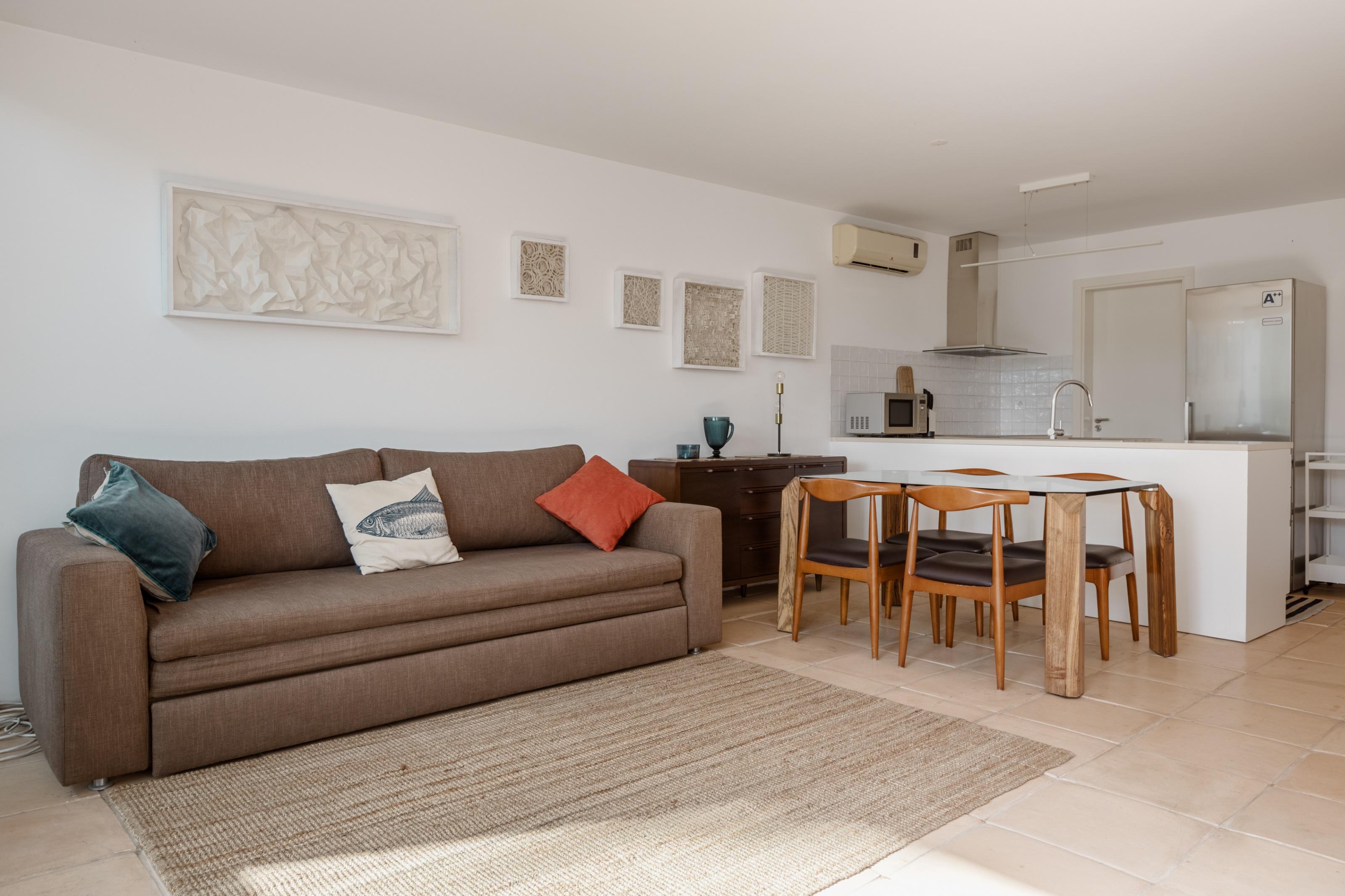 1-bedroom villa, with 116 m2 of gross construction area, private garden and covered terrace, in the private condominium Bom Sucesso Resort with garden and swimming pool, in Óbidos.